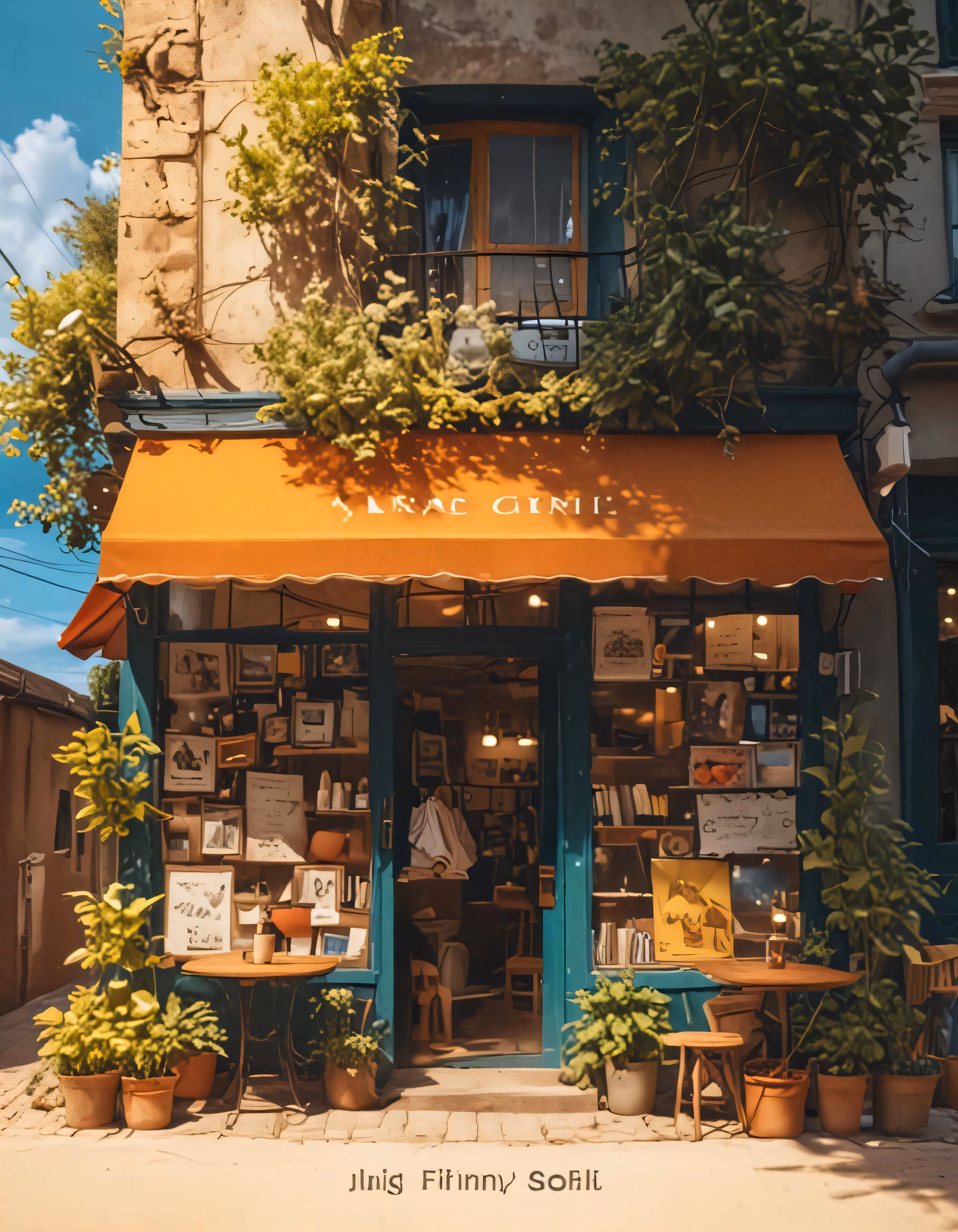 High resolution picture, free to use, a woman walking down the street in front of a book store