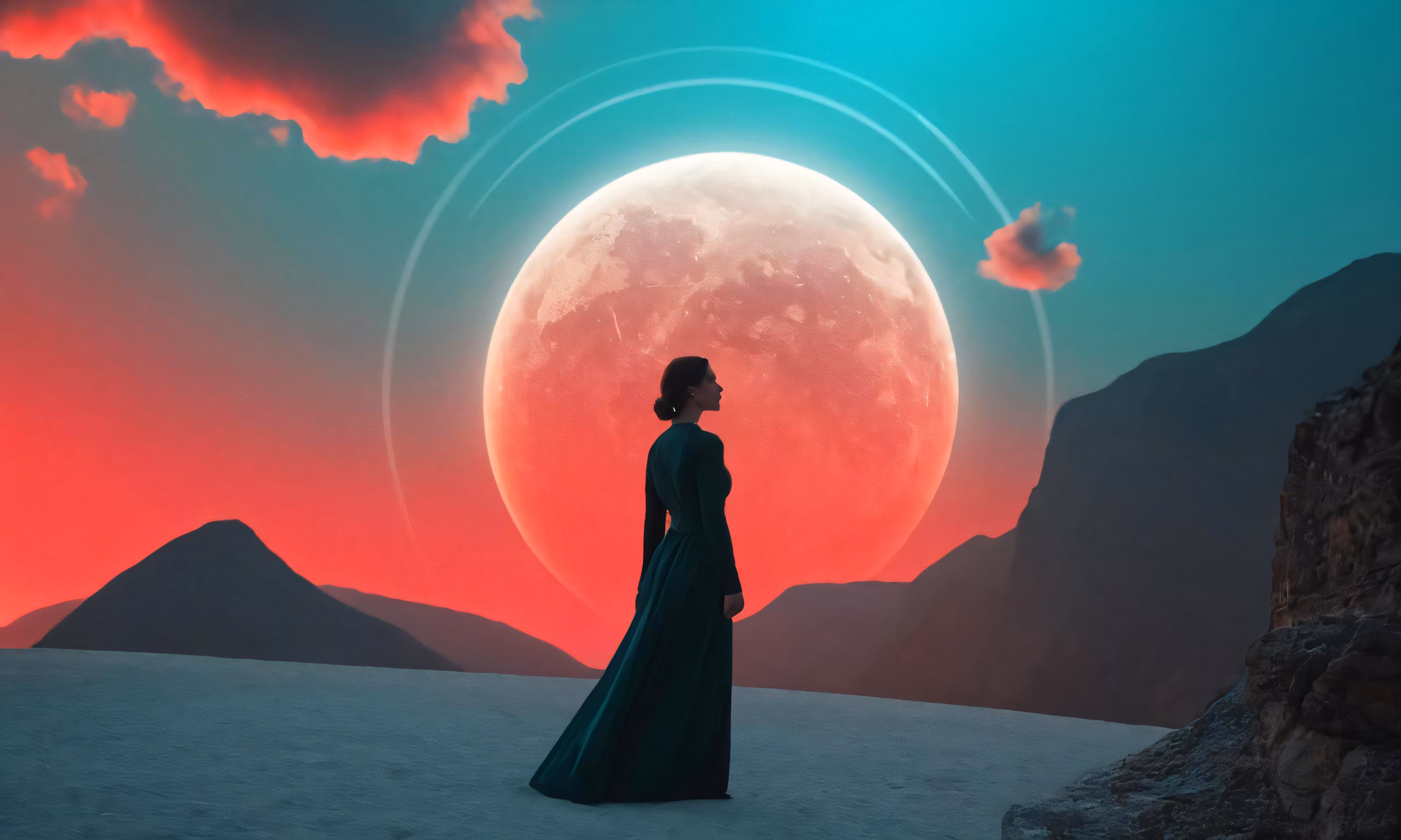 High resolution picture, free to use, a woman wearing a black dress looks into the distance