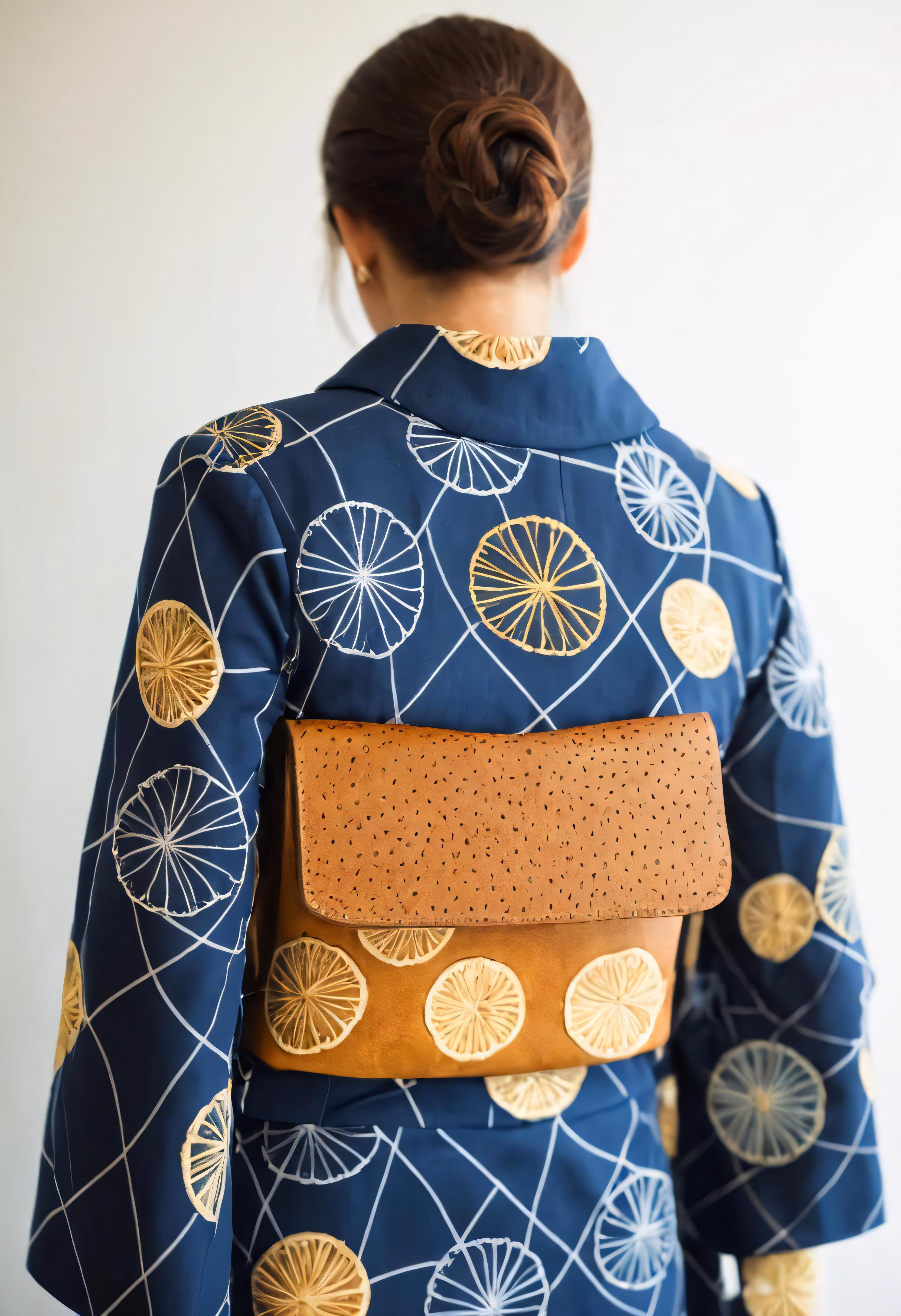 High resolution picture, free to use, a woman wearing a blue and gold japanese robe