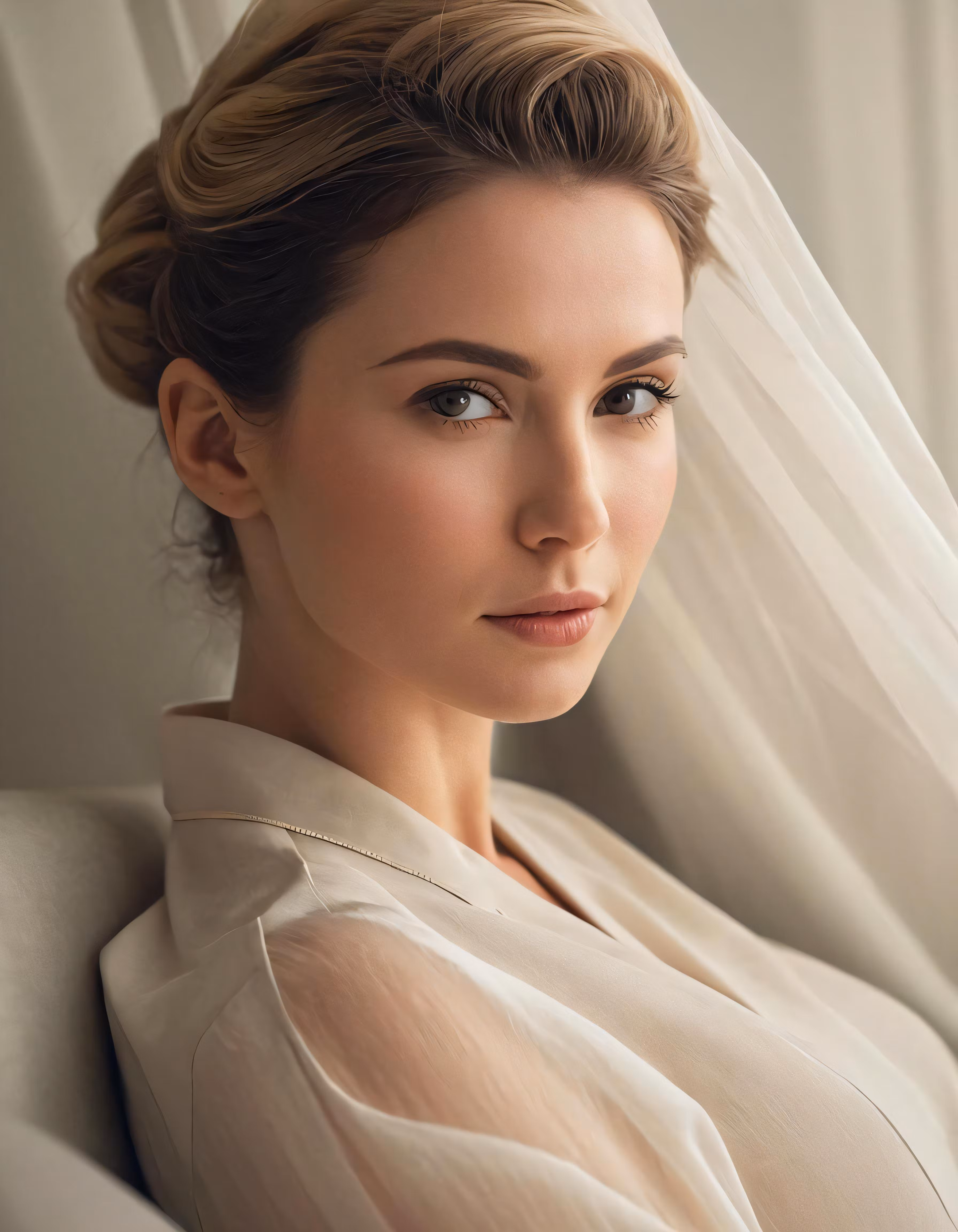 High resolution picture, free to use, a woman wearing a bridal veil while sitting down