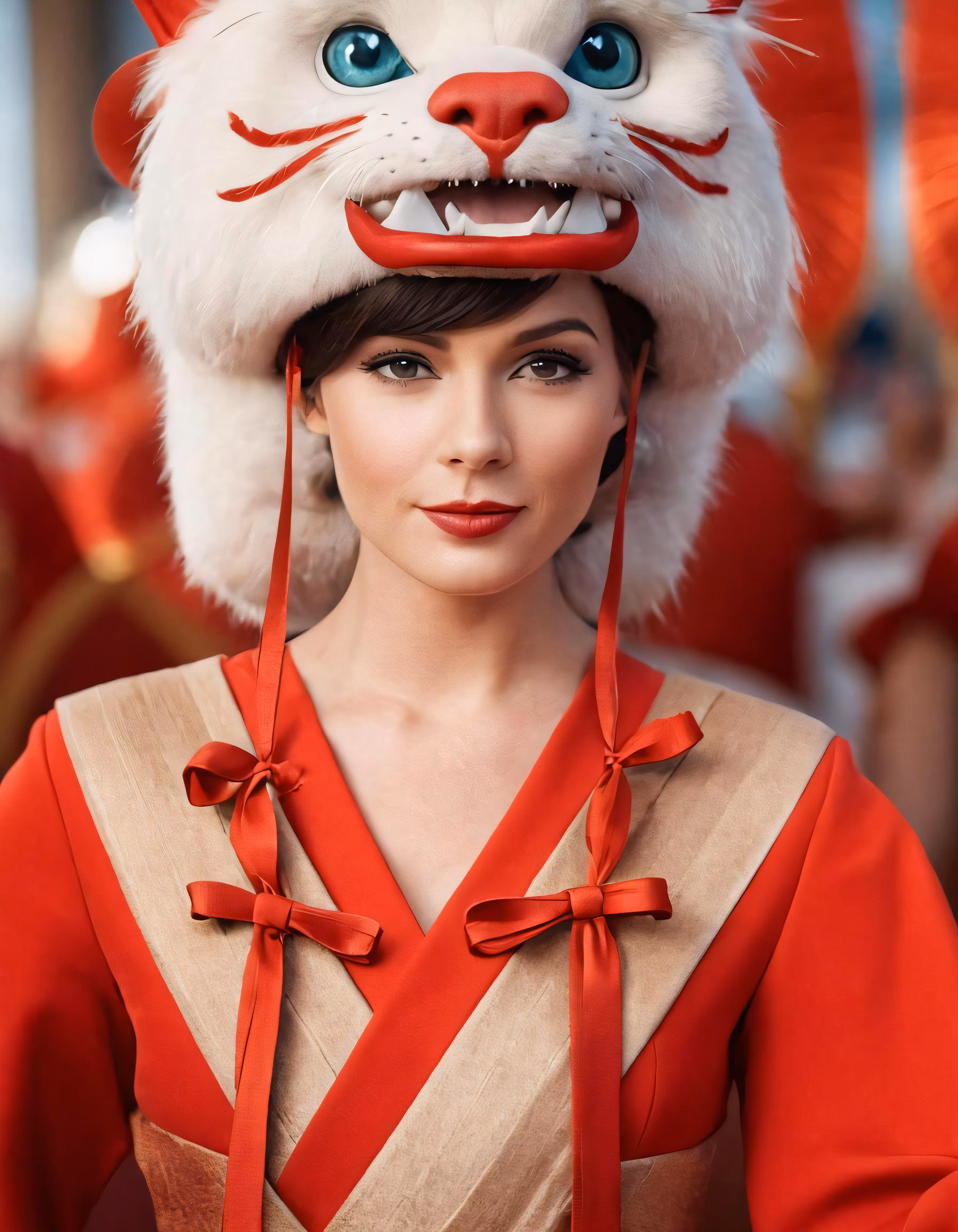 High resolution picture, free to use, a woman wearing a chinese opera headdress in red and gold