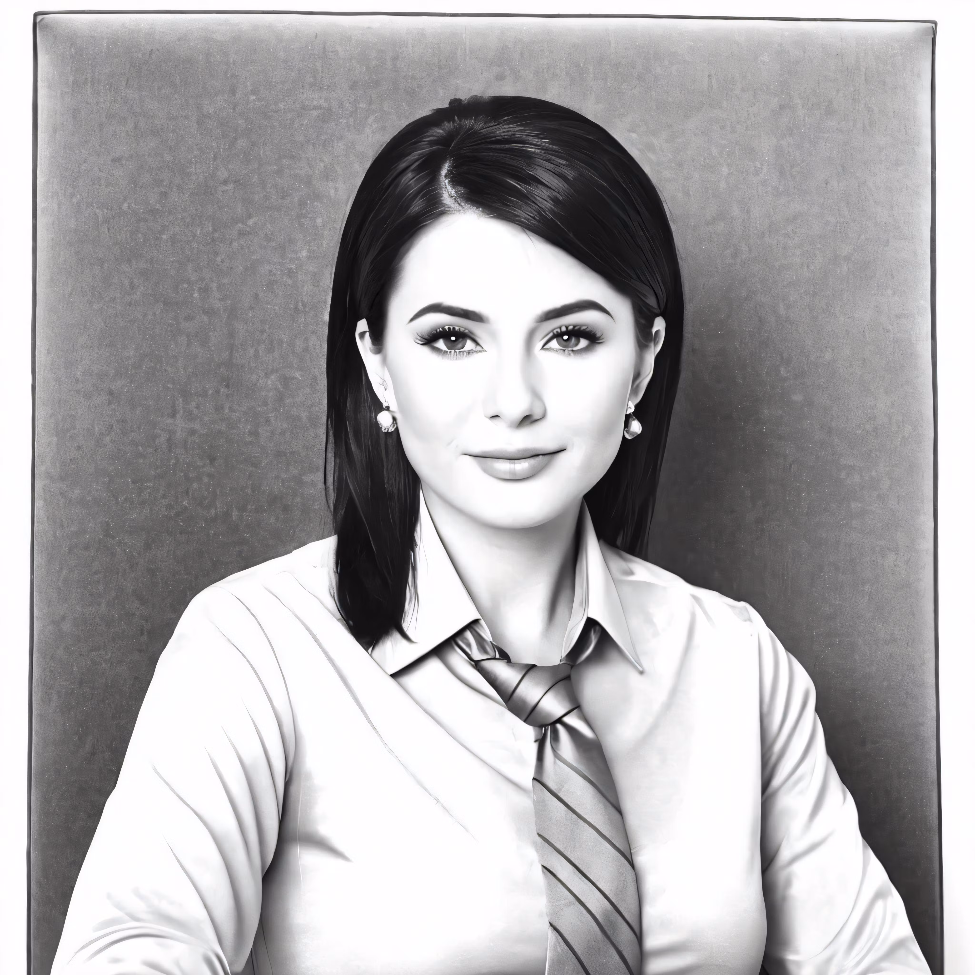High resolution picture, free to use, a woman wearing a dress shirt and tie in black and white