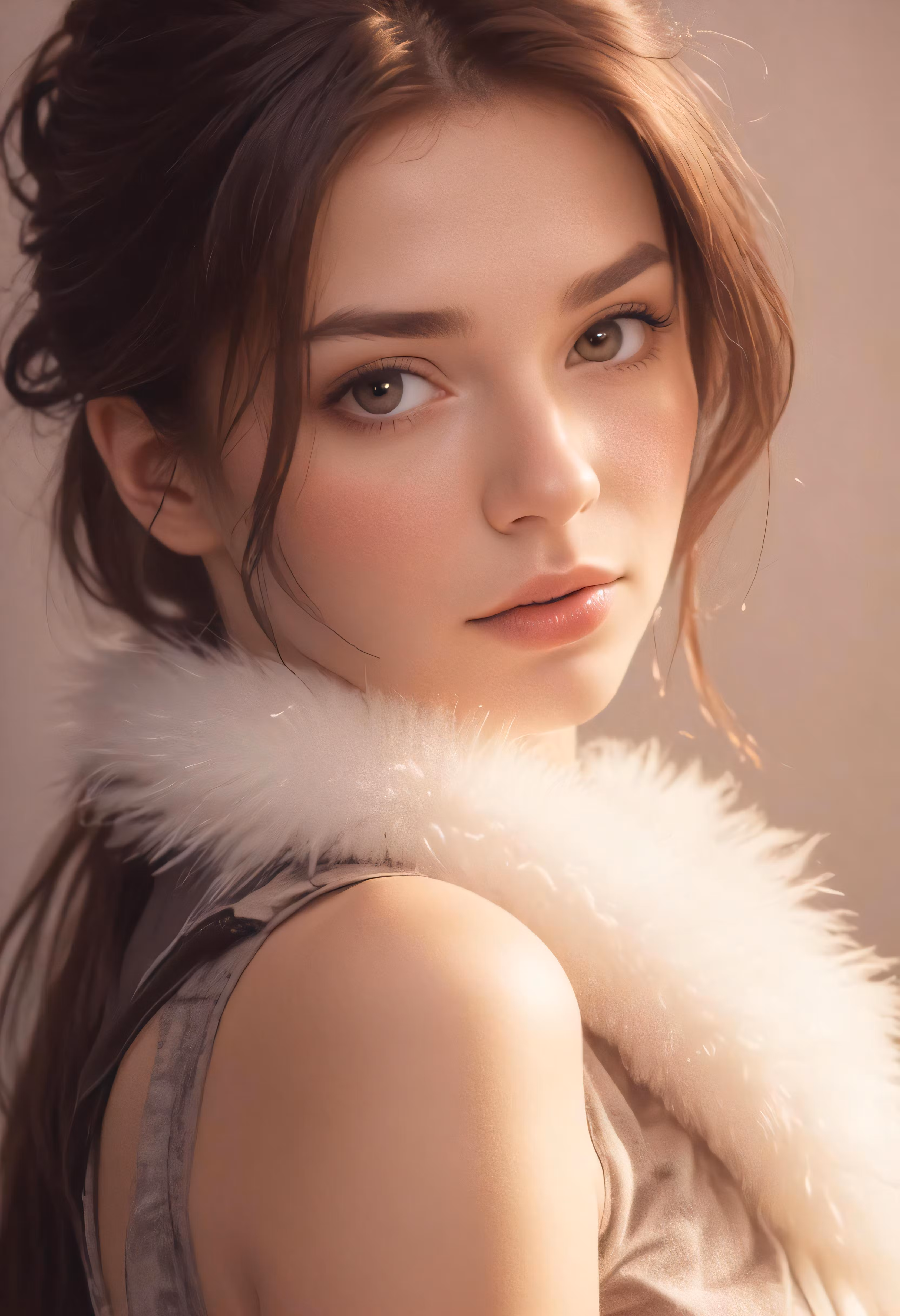 High resolution picture, free to use, a woman wearing a fur collar with her hair swept back