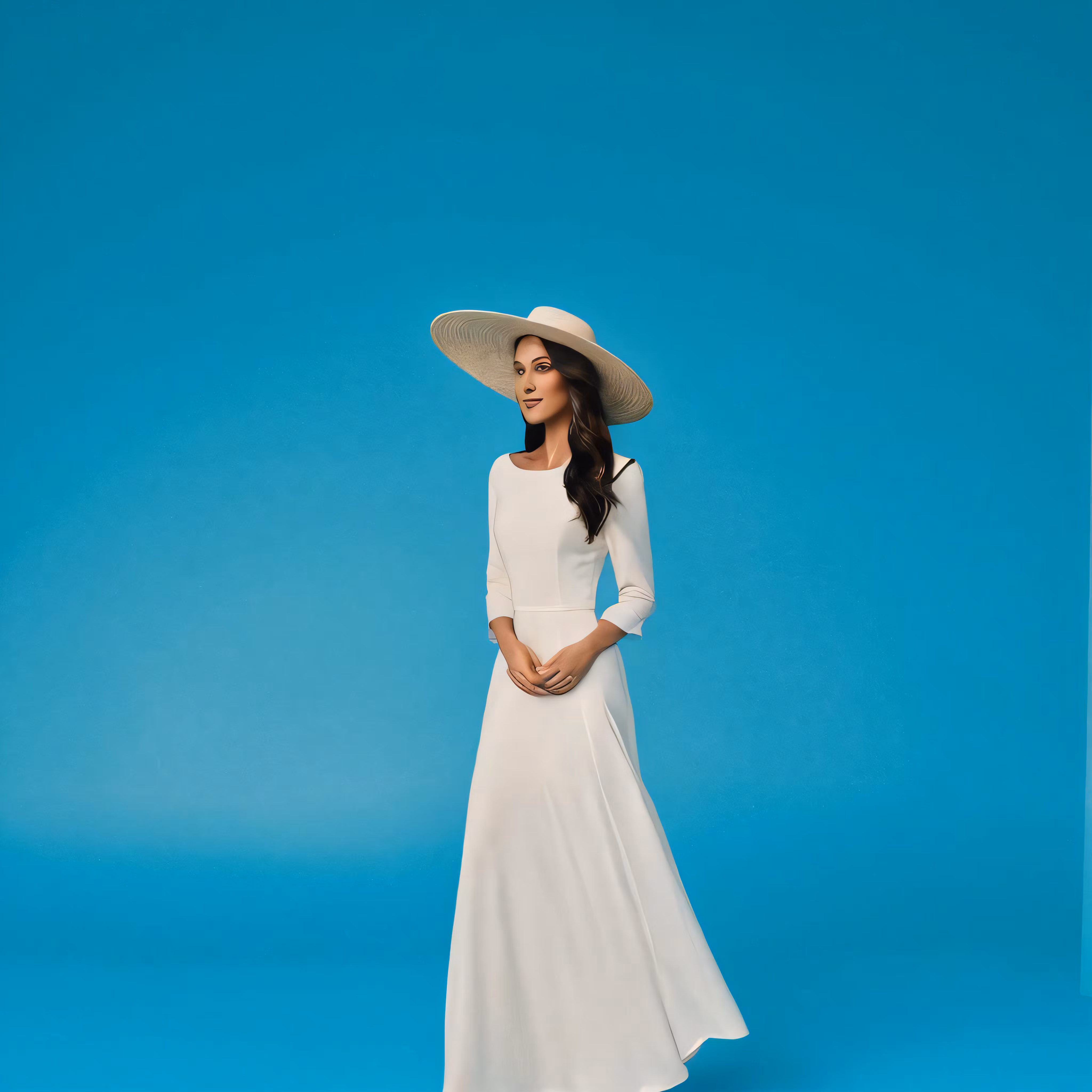 High resolution picture, free to use, a woman wearing a hat and a white dress