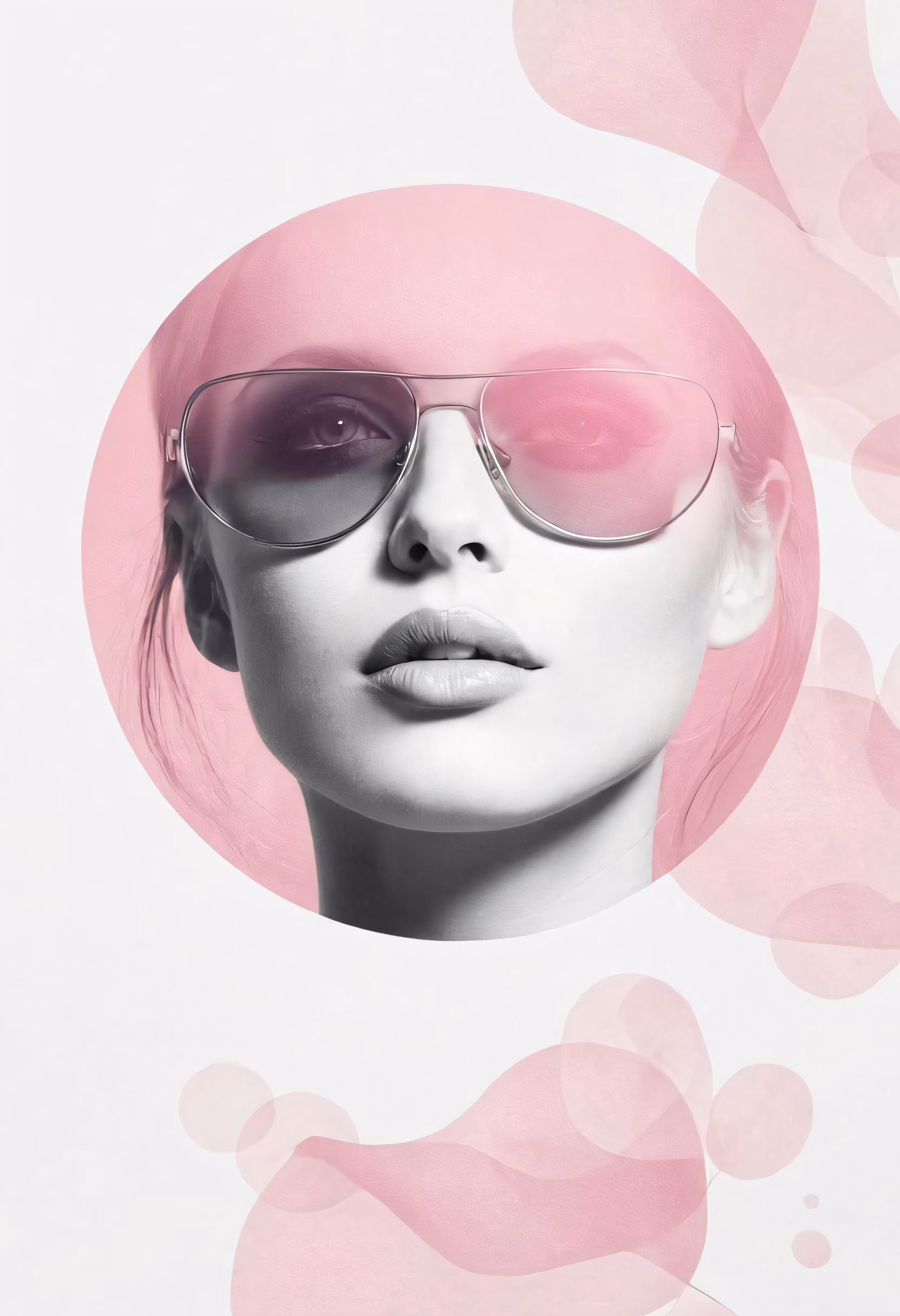 High resolution picture, free to use, a woman wearing a pair of pink tinted sunglasses