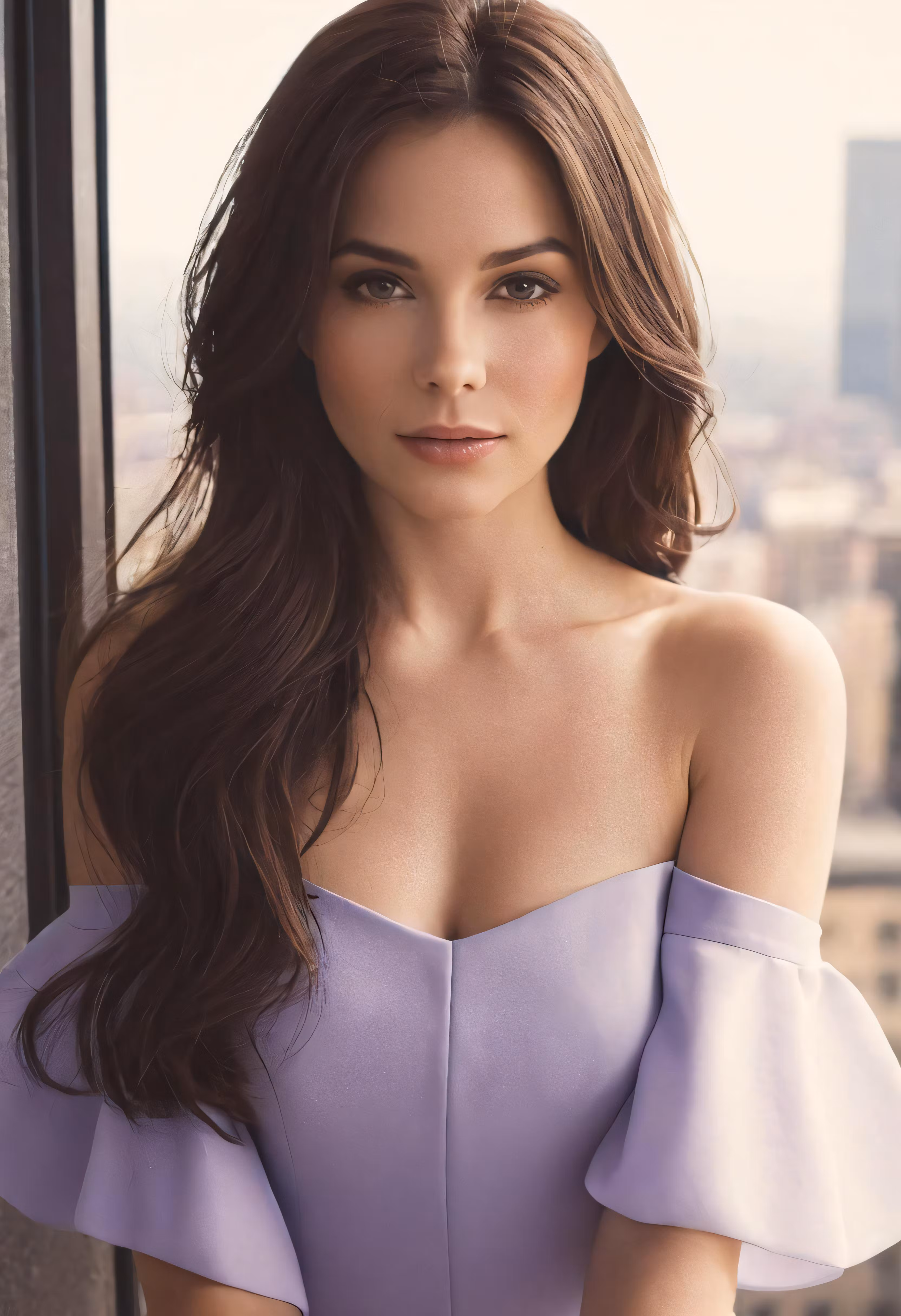 High resolution picture, free to use, a woman wearing a purple dress posing for a magazine