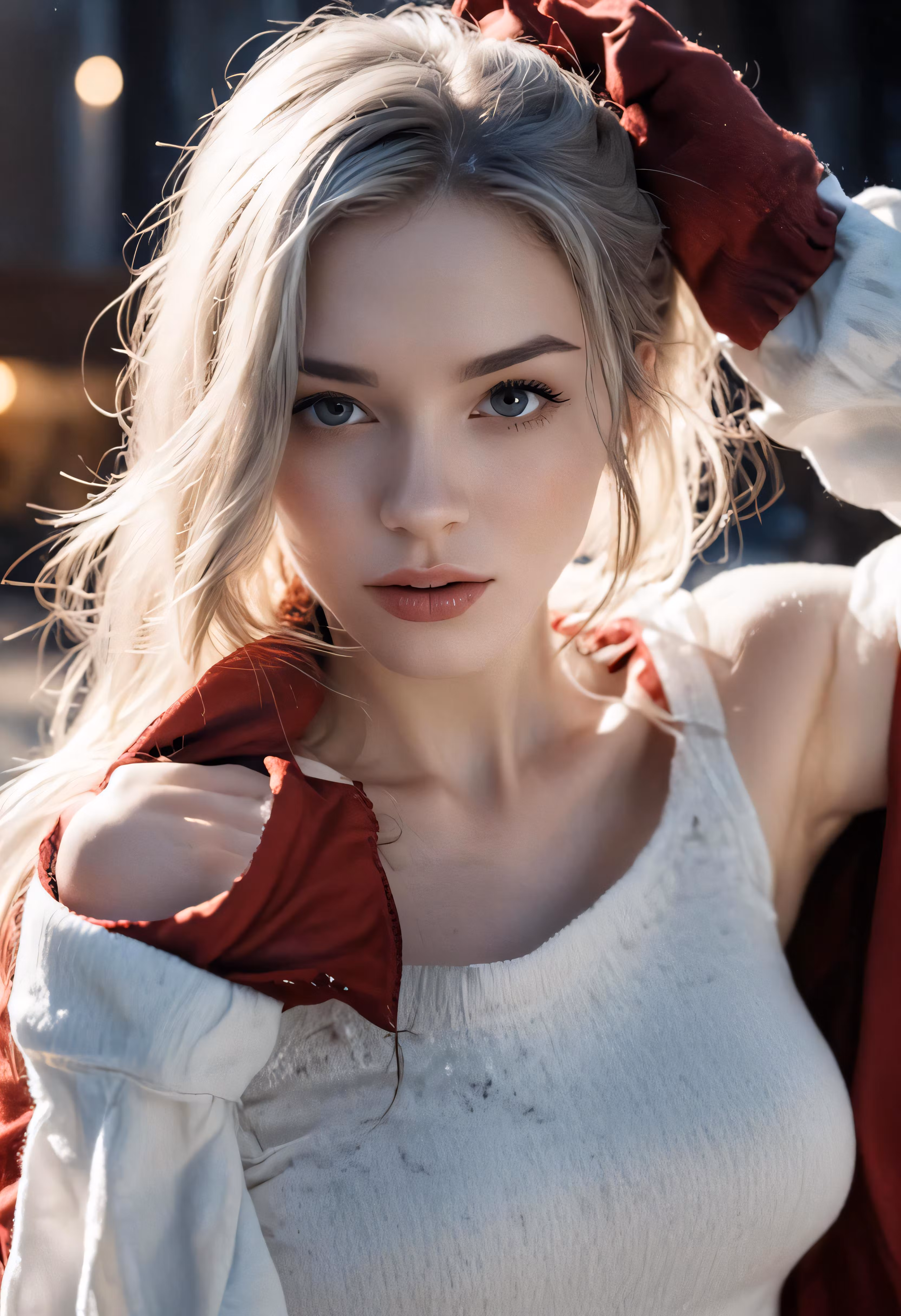 High resolution picture, free to use, a woman wearing a red bow in a white top