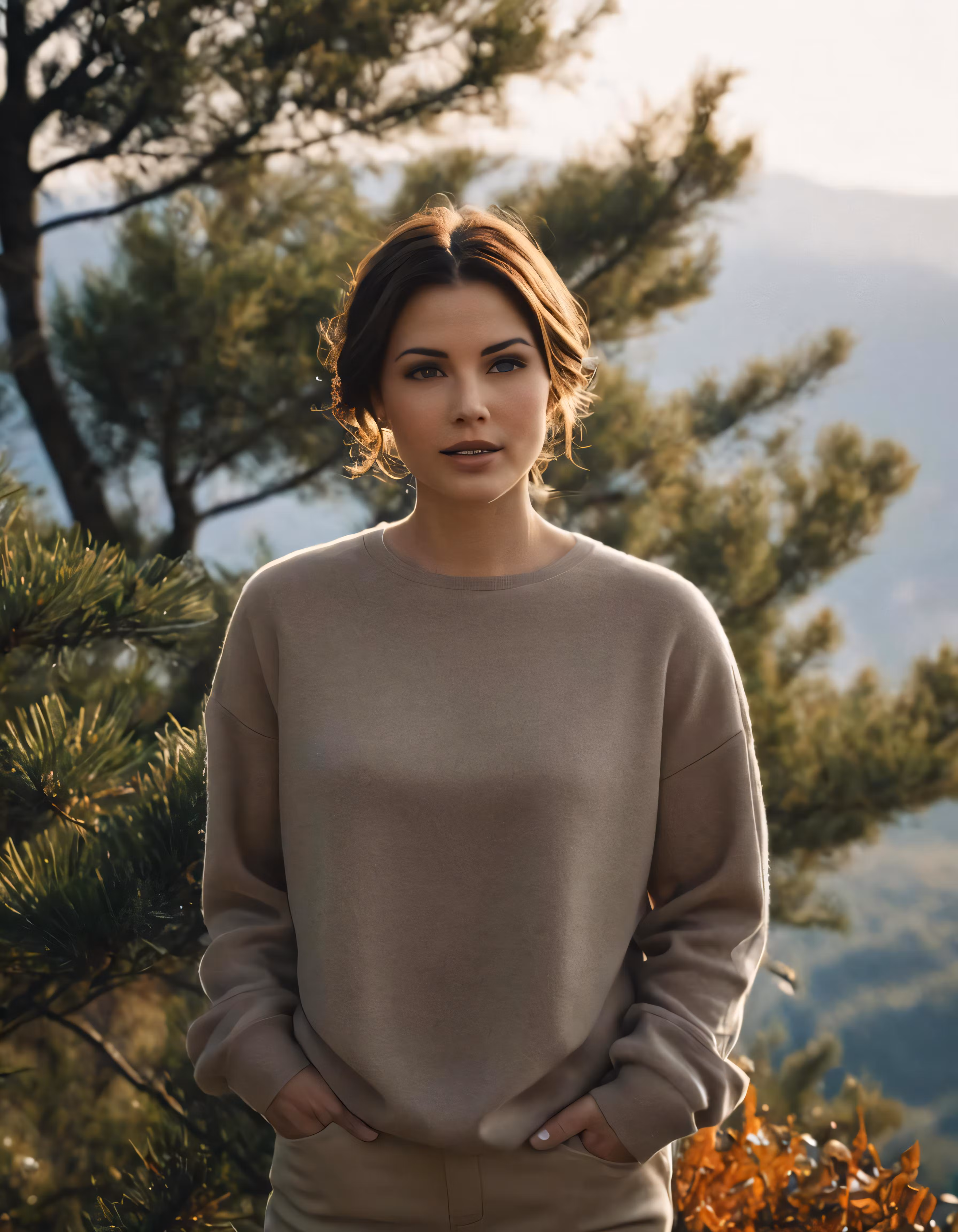 High resolution picture, free to use, a woman wearing a sweater standing outside on a mountain