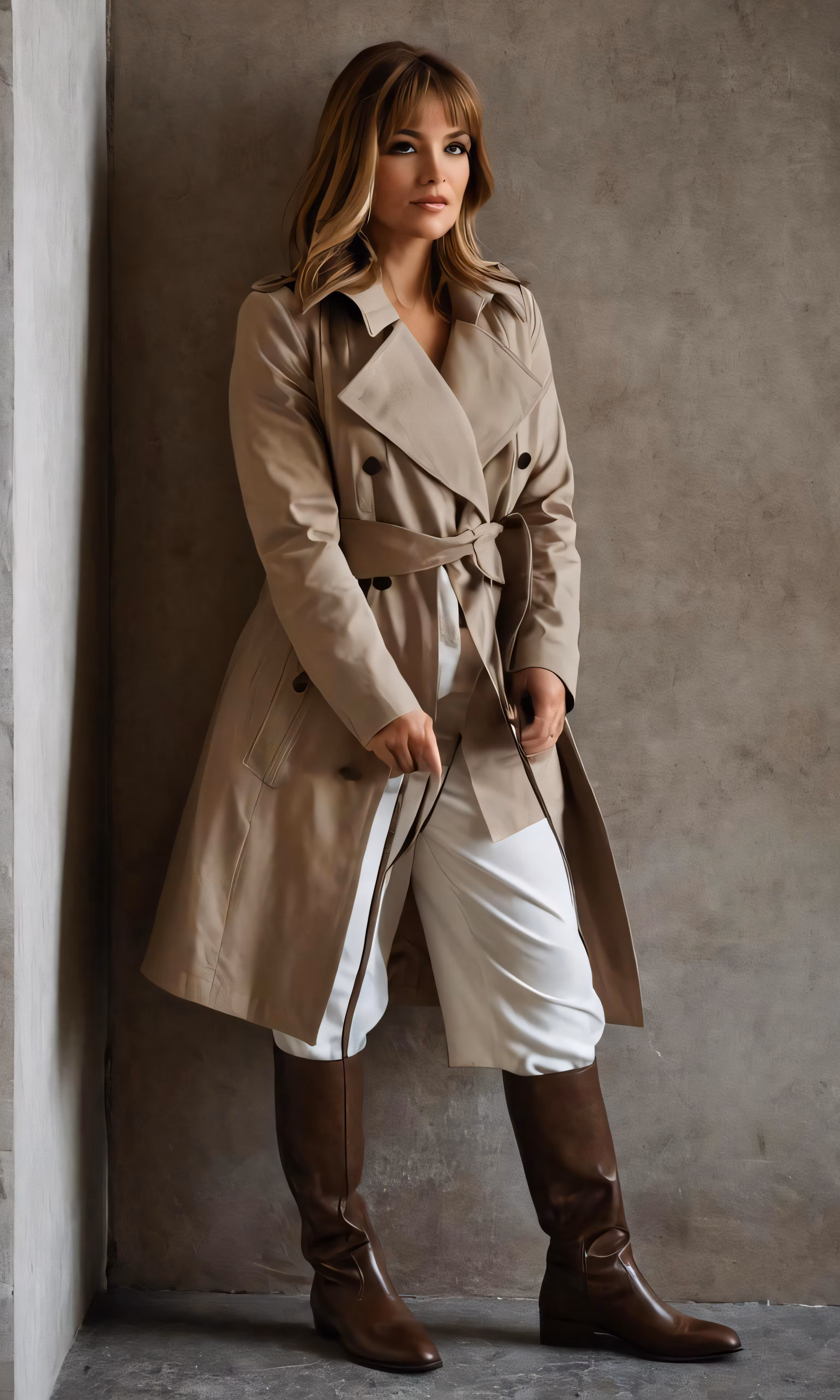 High resolution picture, free to use, a woman wearing a trench coat and boots