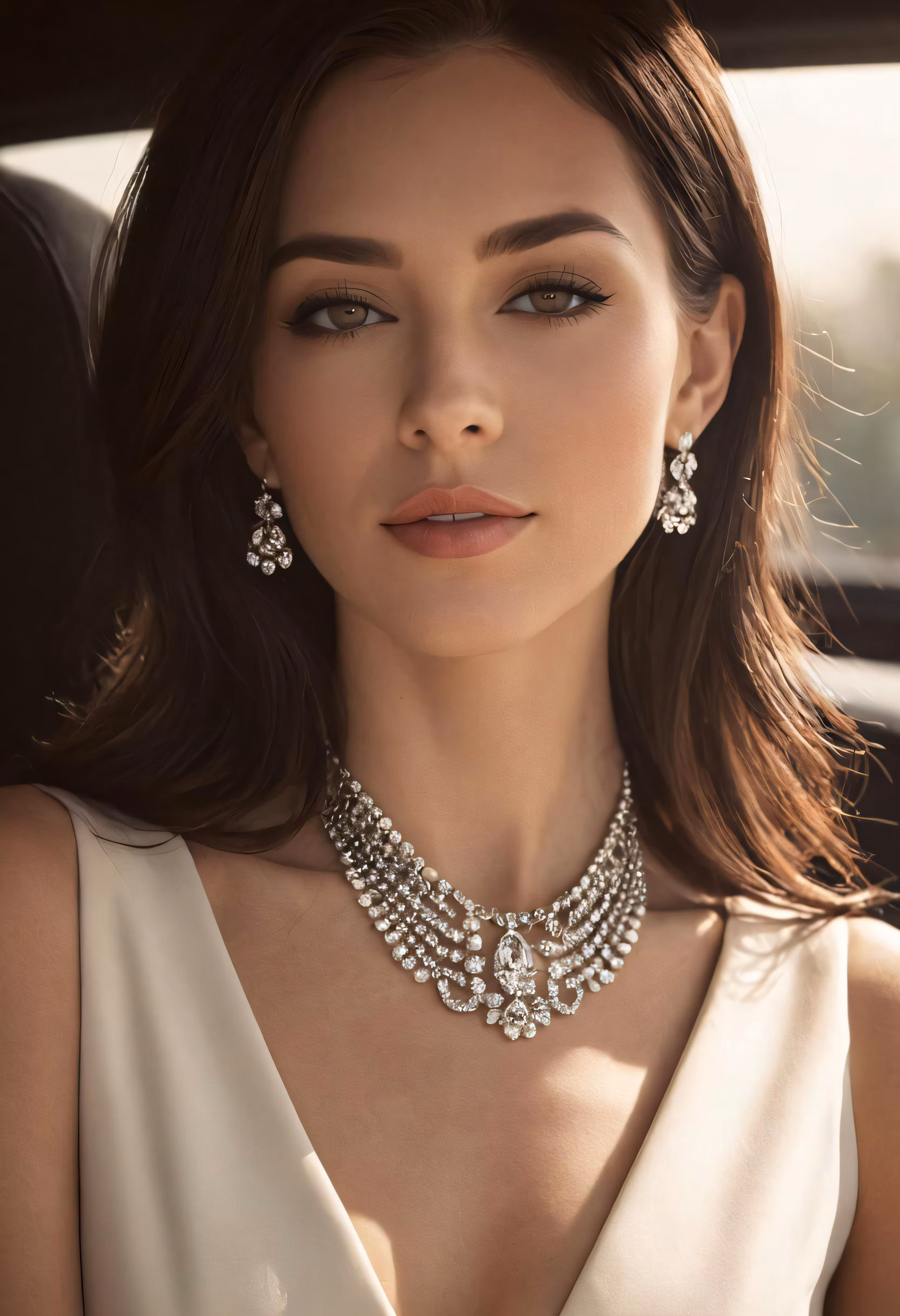 High resolution picture, free to use, a woman wearing an elegant necklace and matching earrings