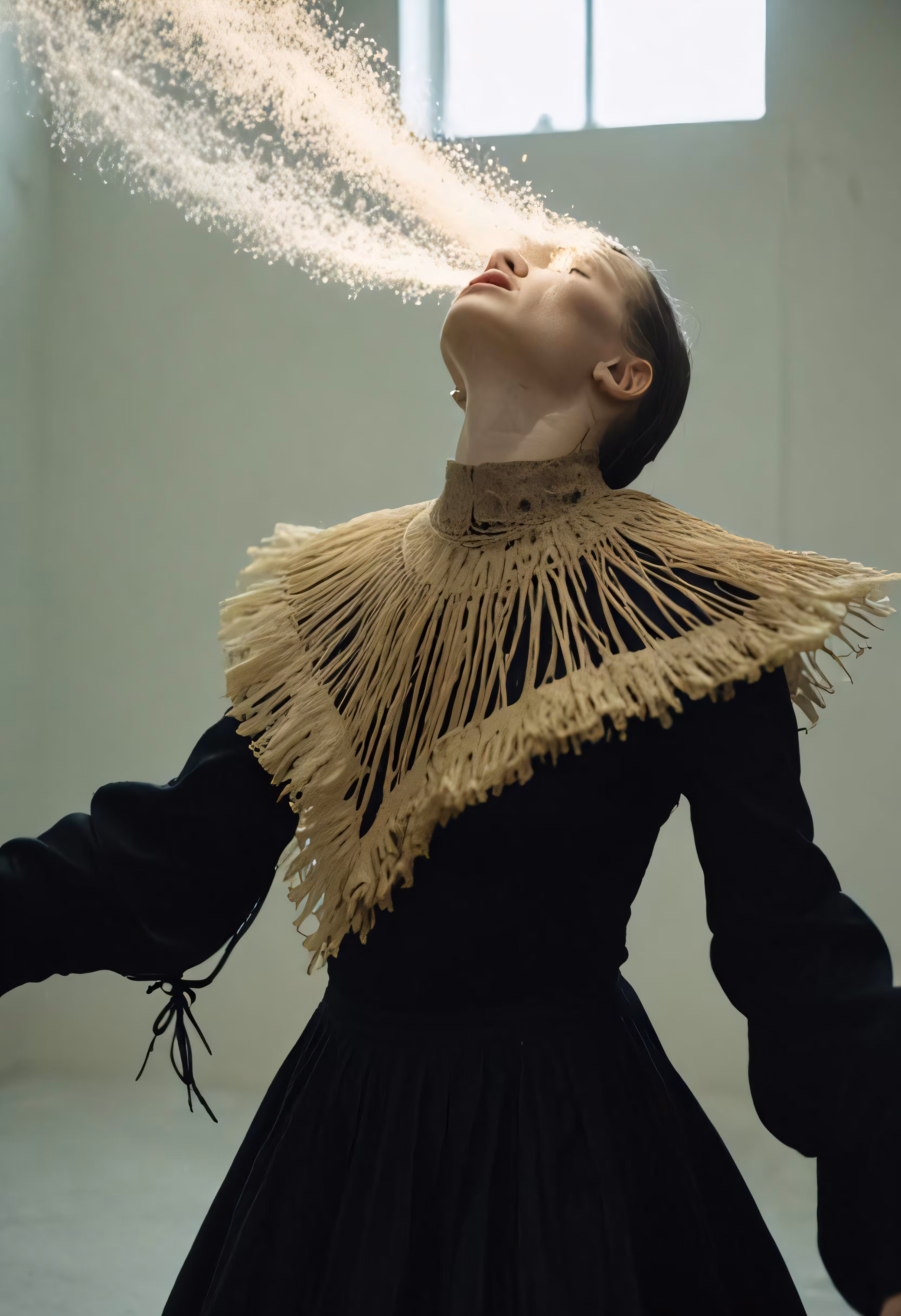 High resolution picture, free to use, a woman wearing black dress with fringe on her shoulders