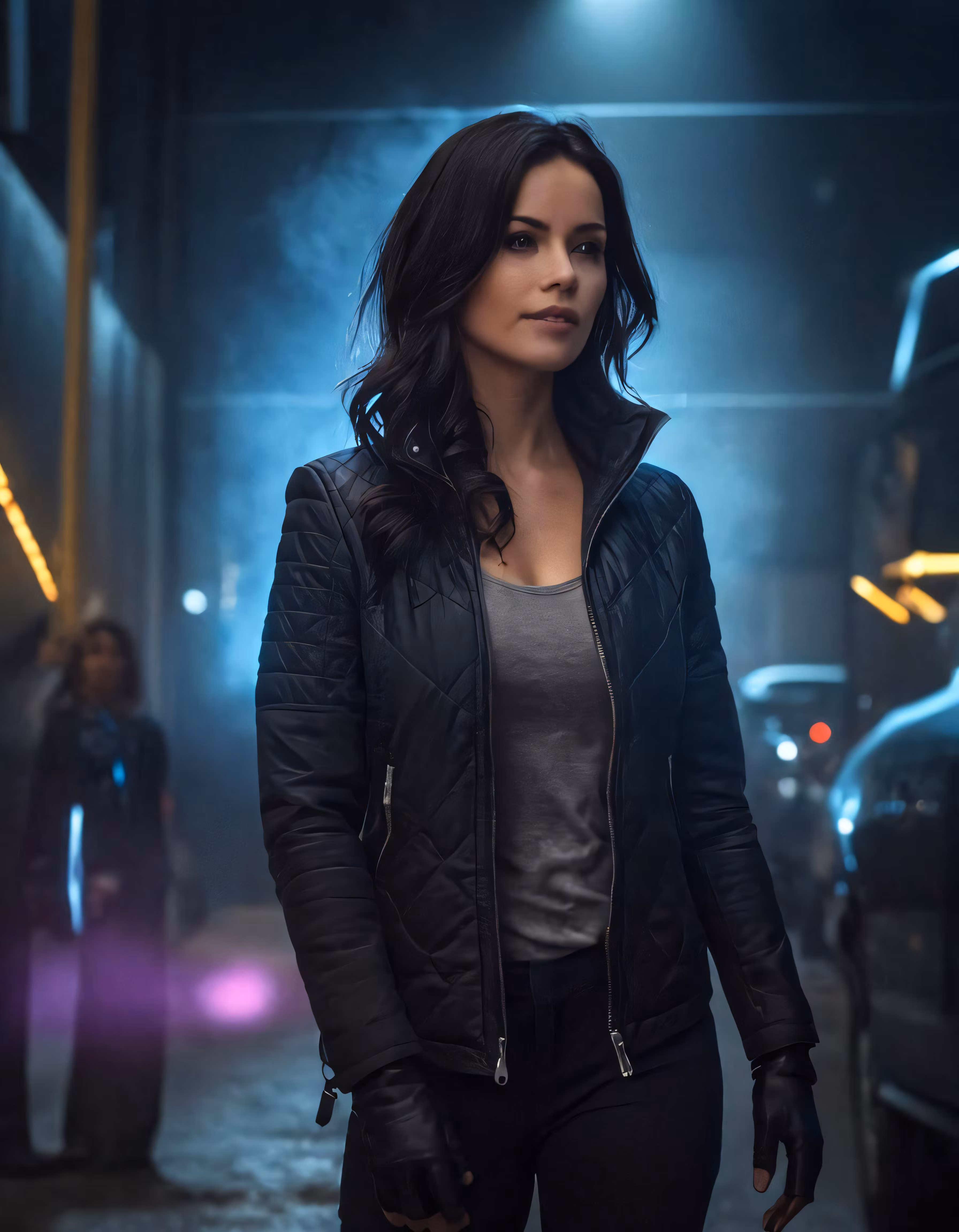 High resolution picture, free to use, a woman wearing black jacket and gloves walking in an alley