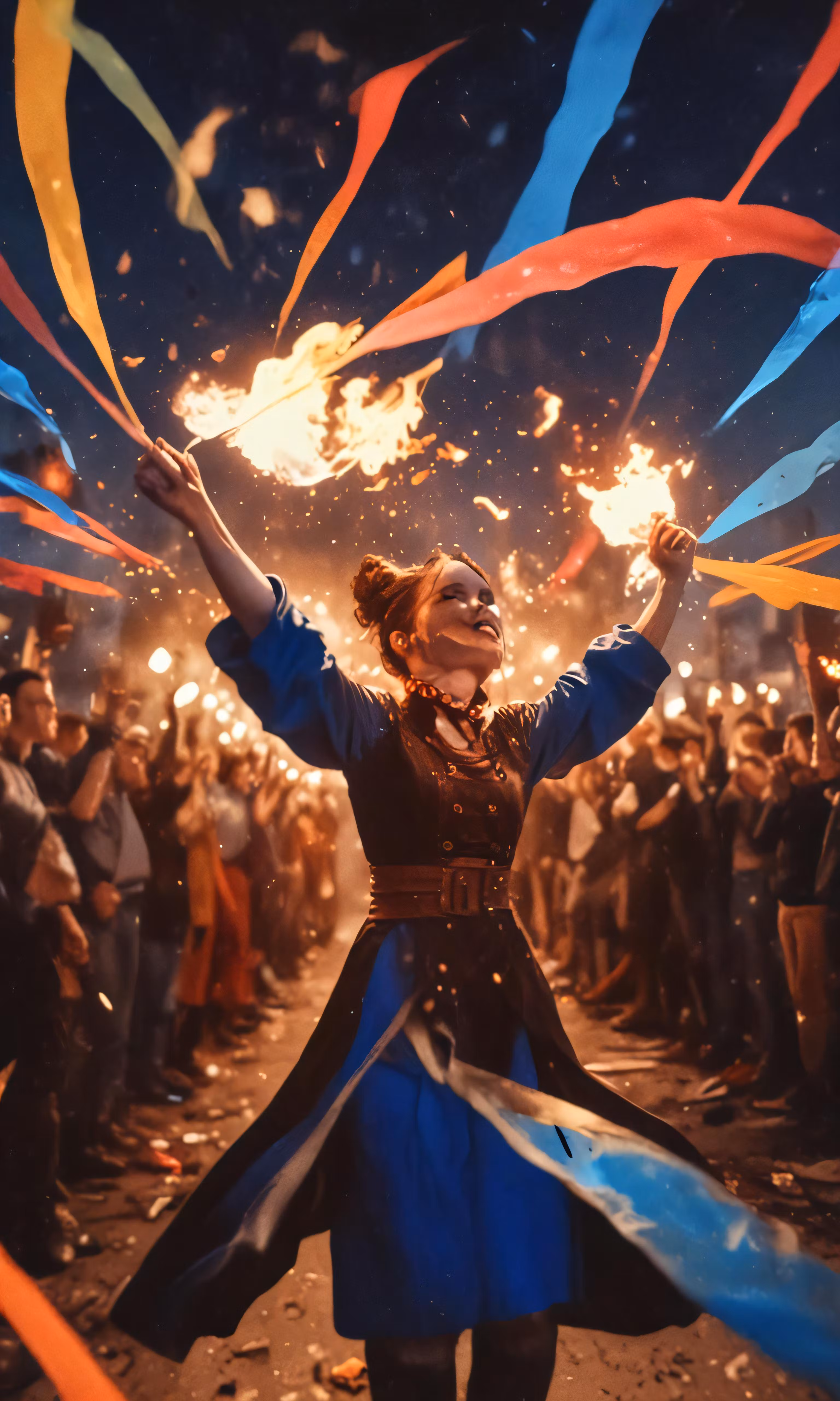 High resolution picture, free to use, a woman wearing blue holds fire while wearing long sleeves