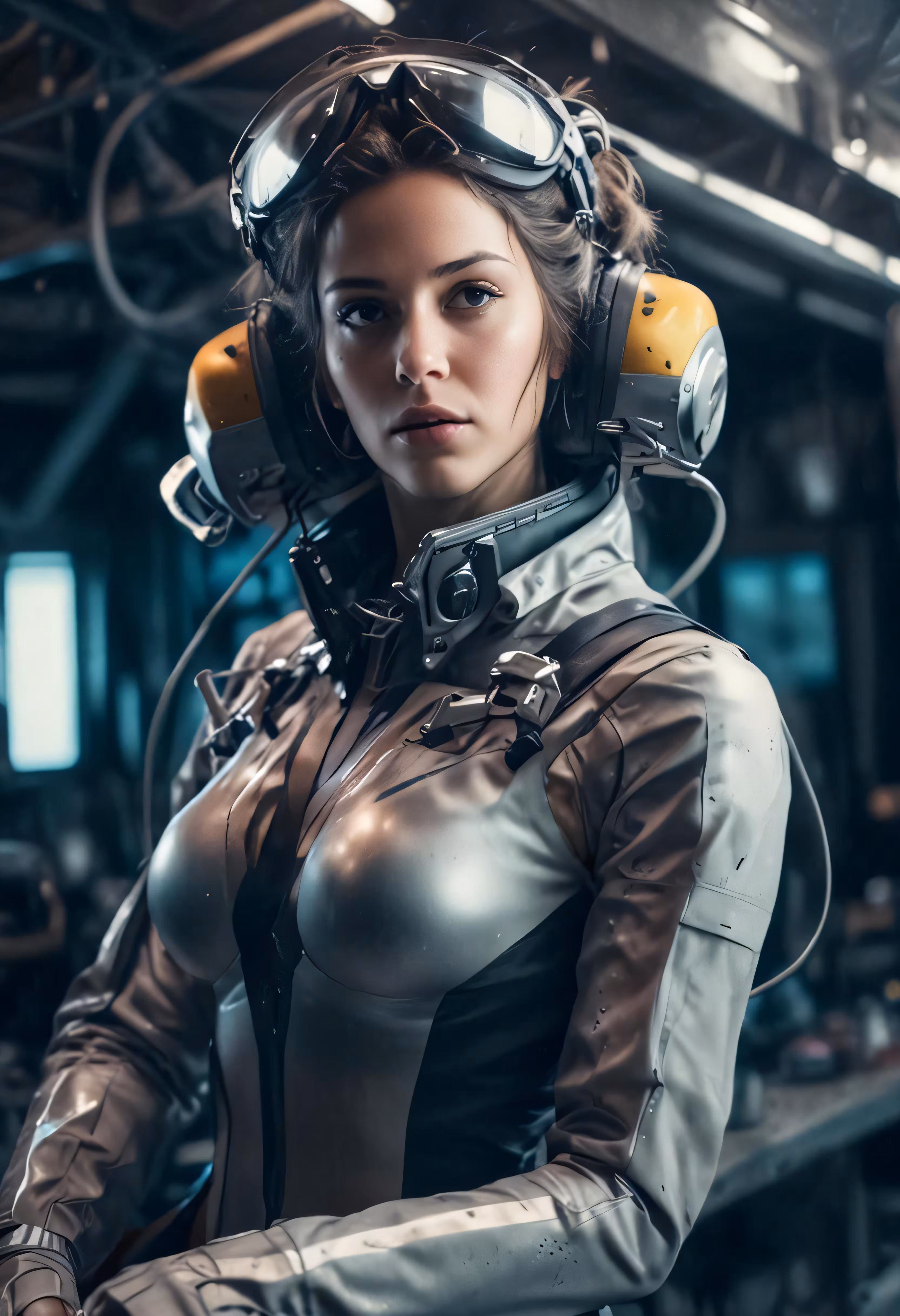 High resolution picture, free to use, a woman wearing goggles and futuristic gear