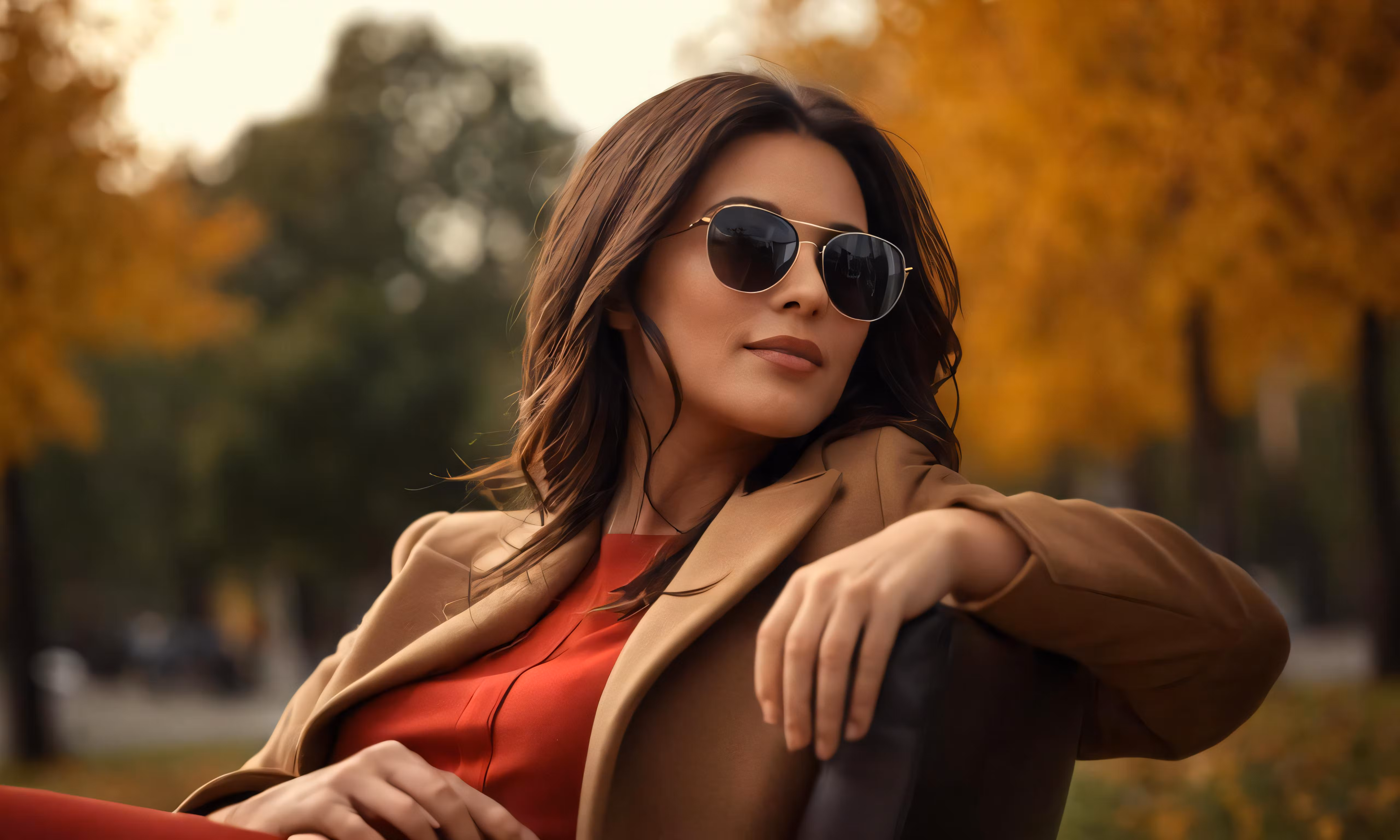 High resolution picture, free to use, a woman wearing sunglasses sitting on top of a chair