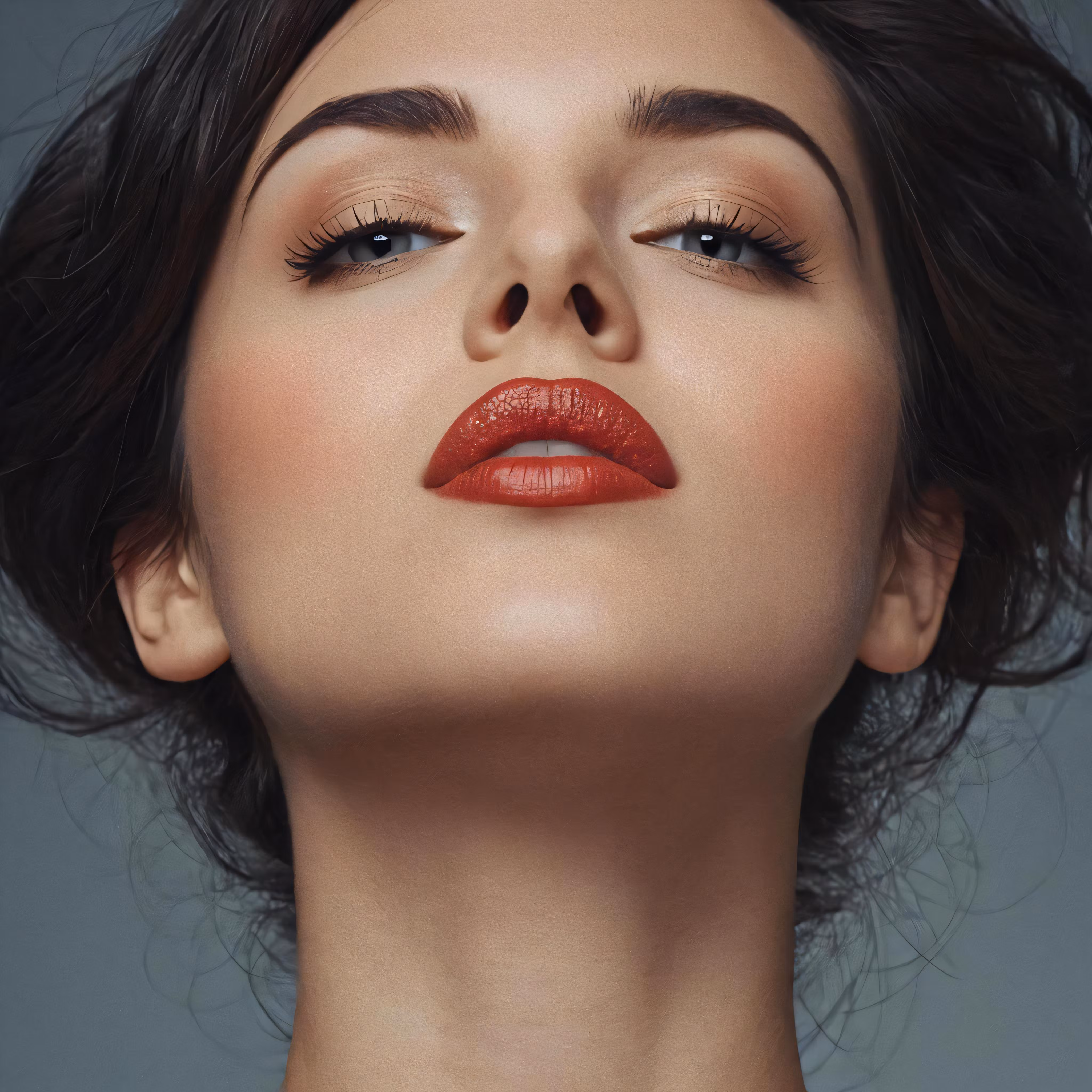 High resolution picture, free to use, a woman with a bright red lipstick and long eyelashes