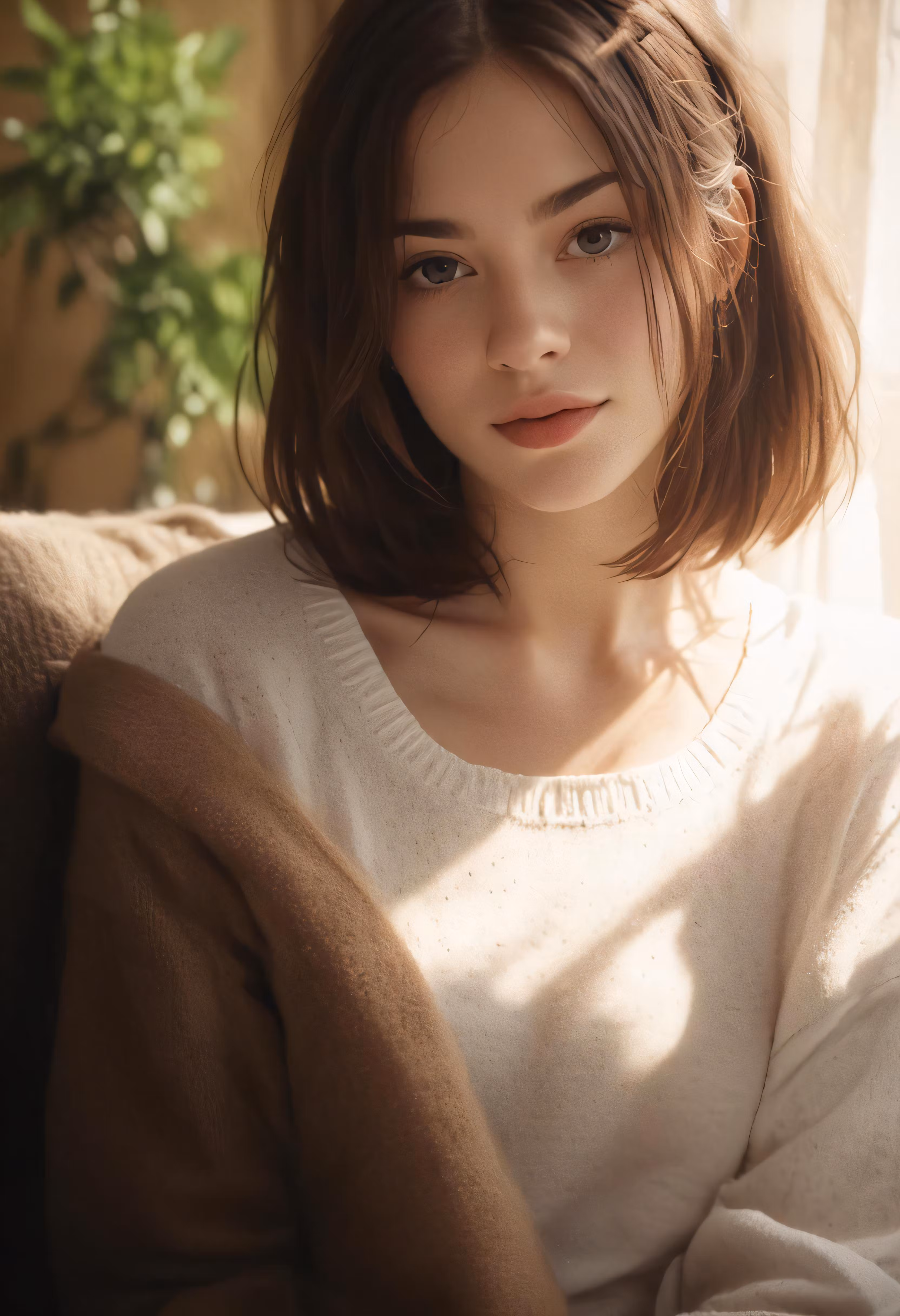 High resolution picture, free to use, a woman with a brown sweater and a tan cardigan