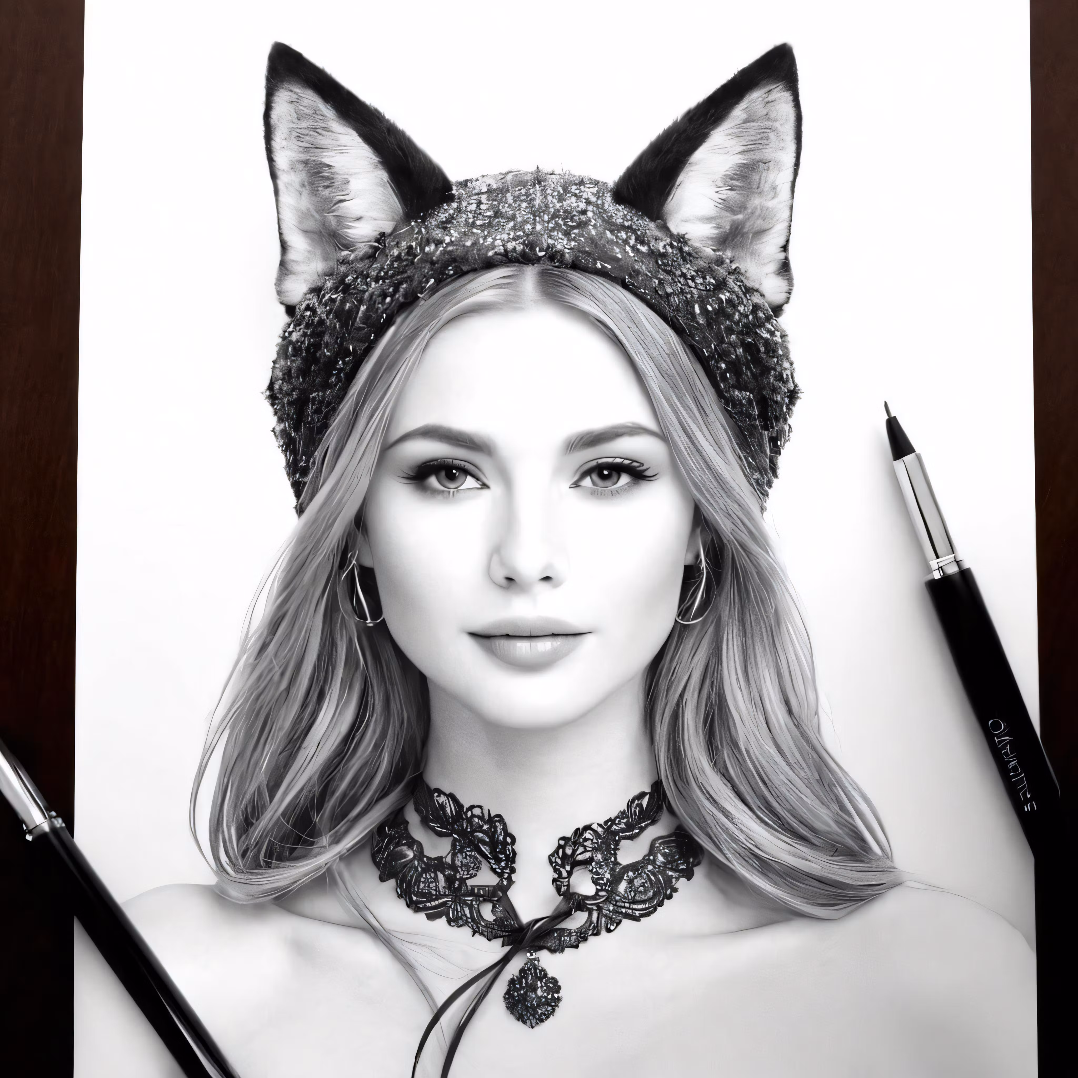 High resolution picture, free to use, a woman with a cat ears and necklace