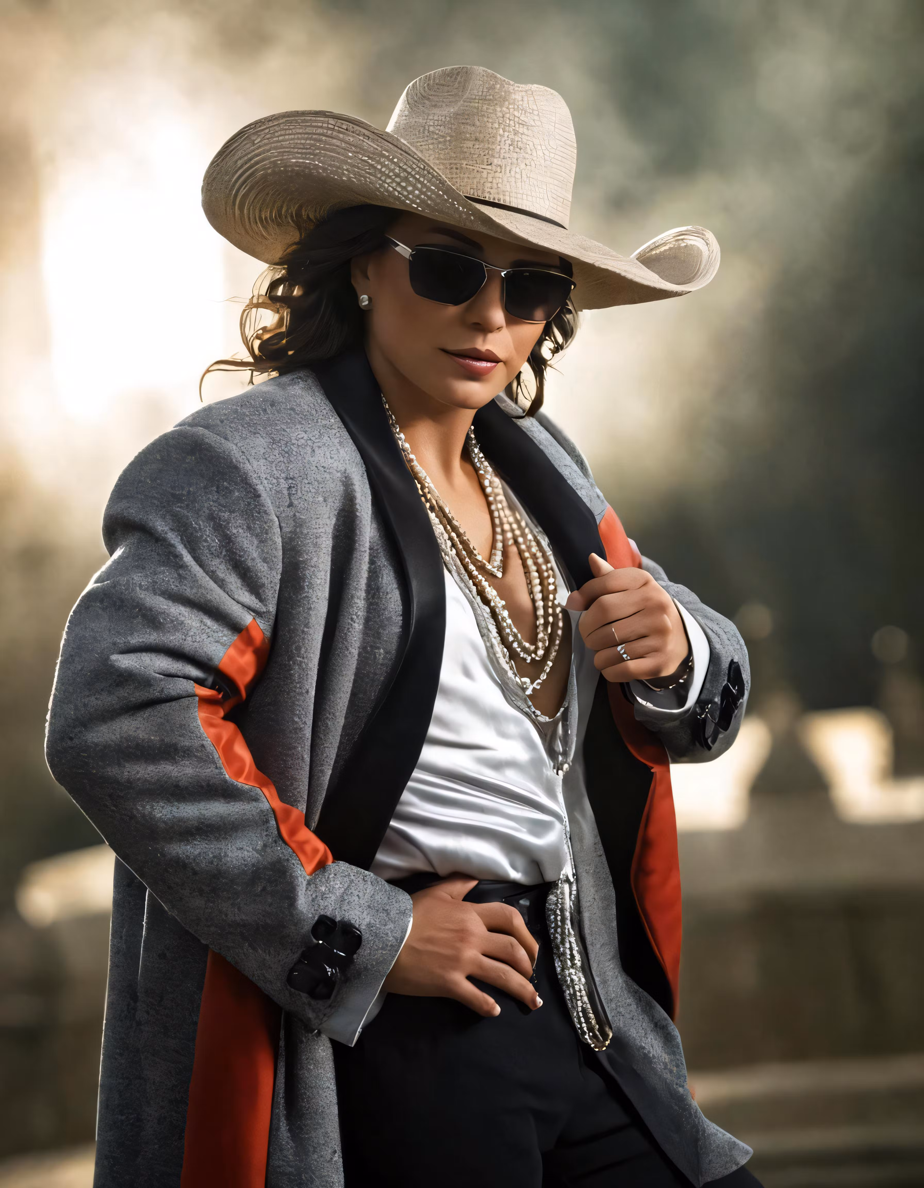 High resolution picture, free to use, a woman with a cowboy hat and sunglasses