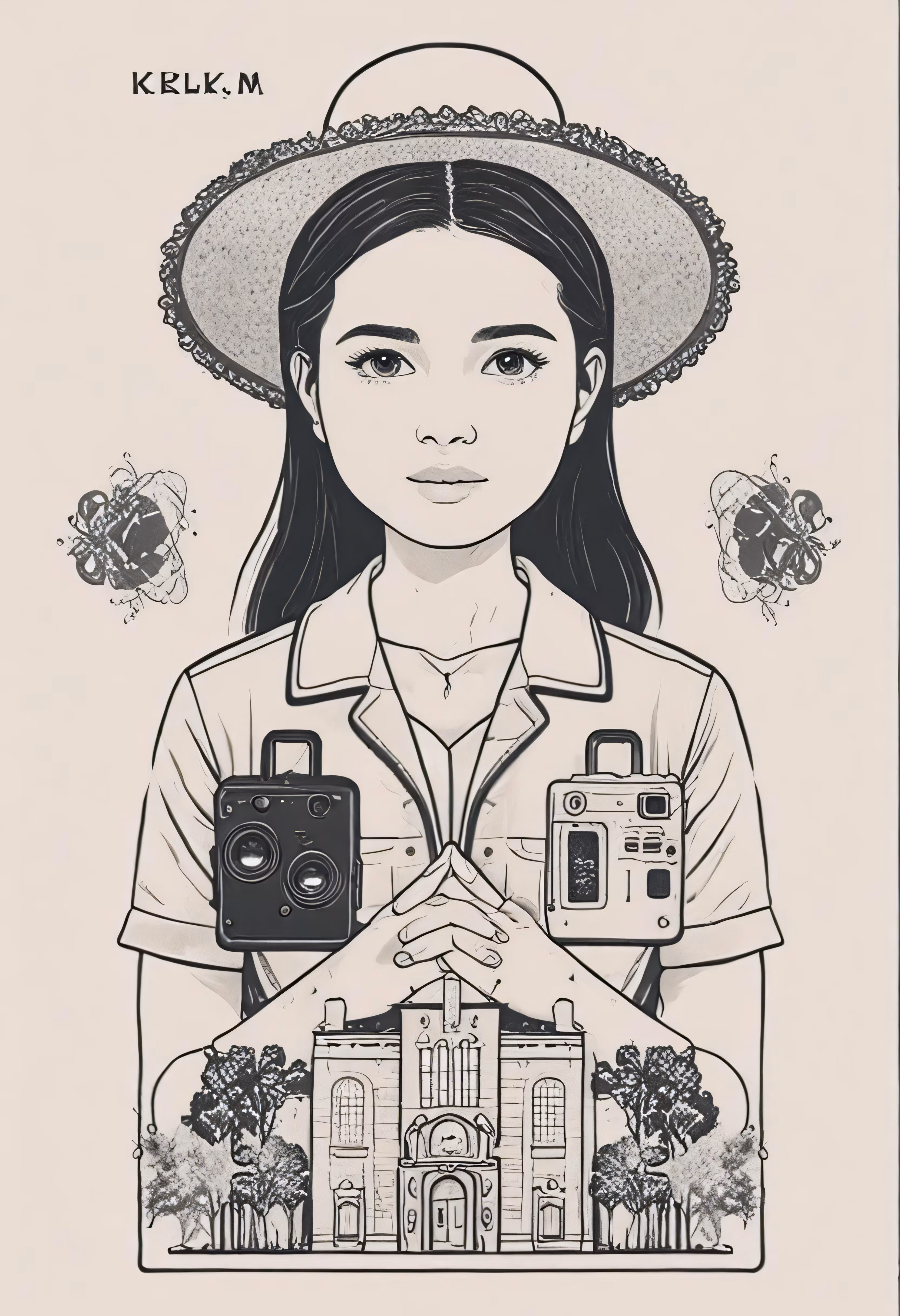 High resolution picture, free to use, a woman with a hat and two cameras in her hands