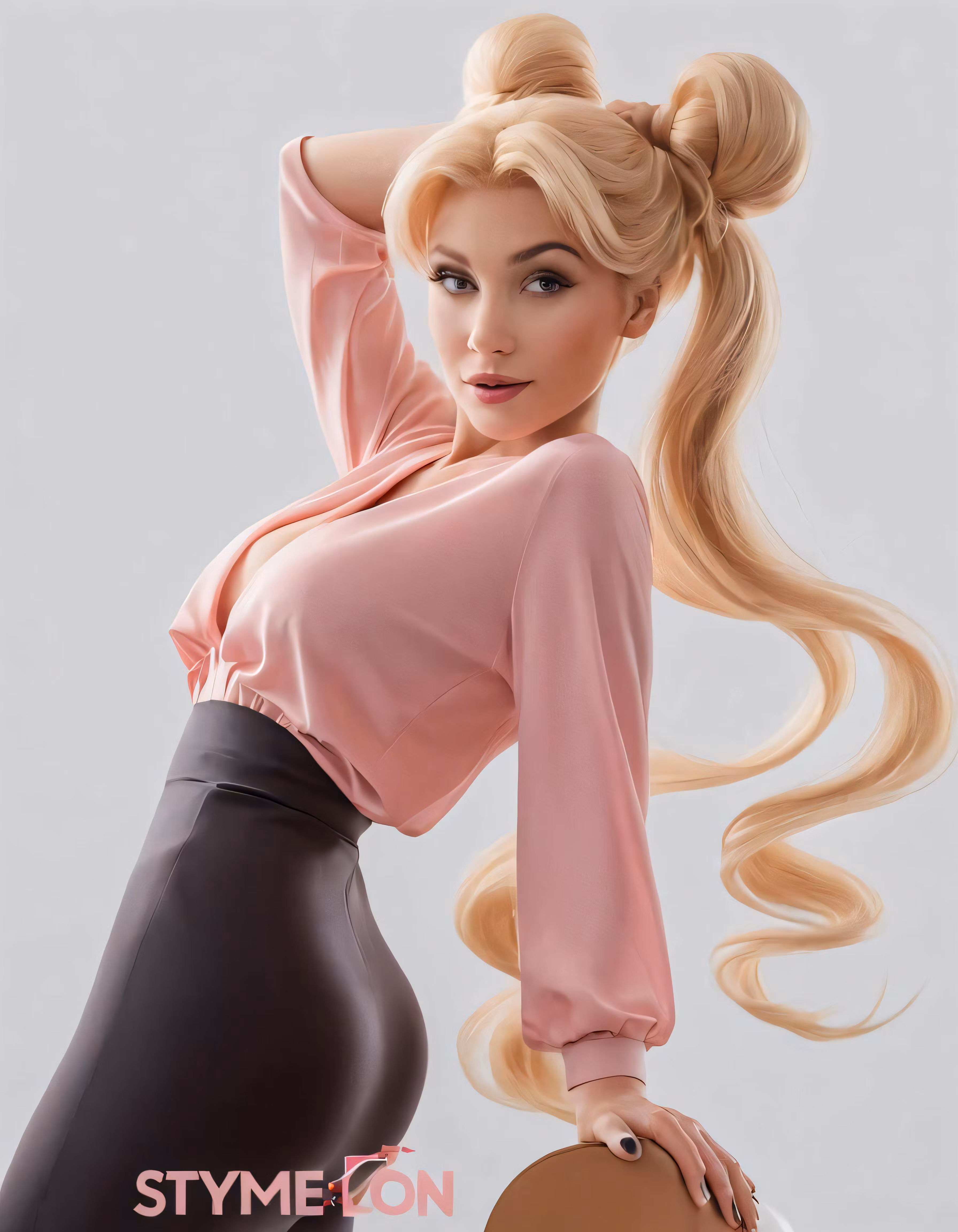 High resolution picture, free to use, a woman with a ponytail, with her hand on her head