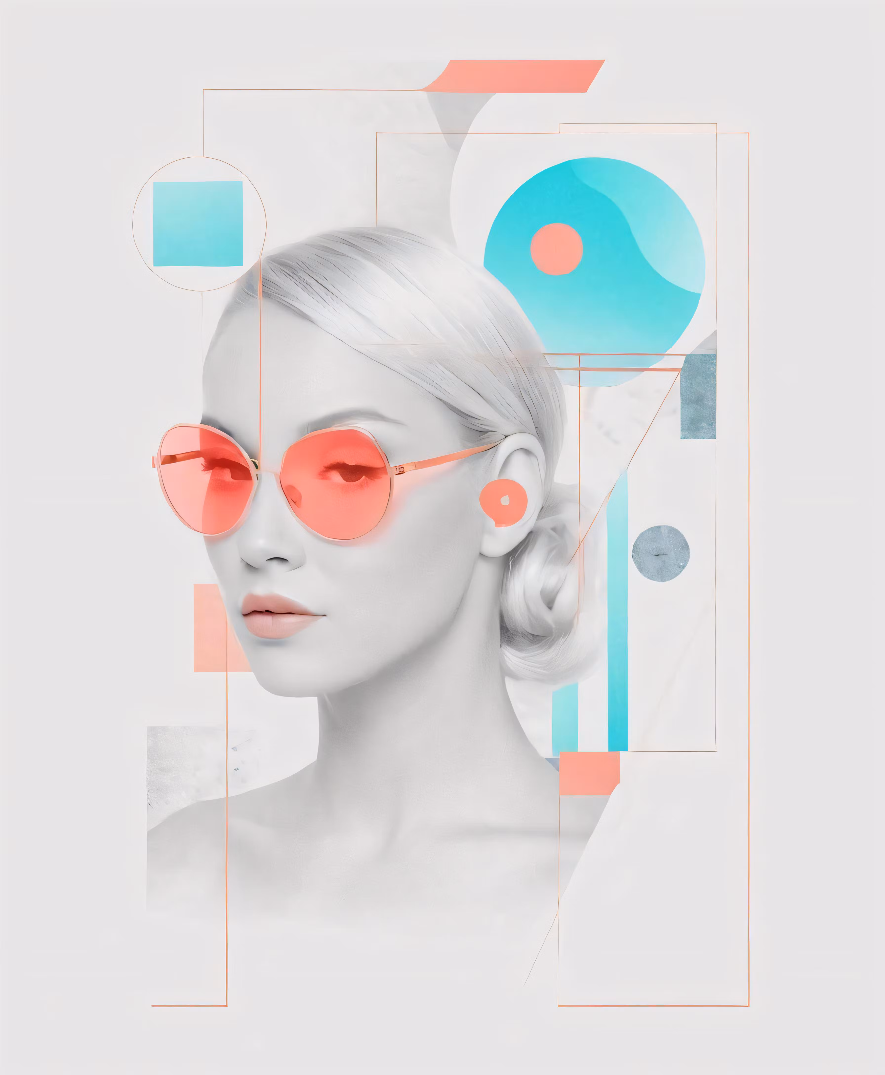 High resolution picture, free to use, a woman with a retro fashion face and glasses