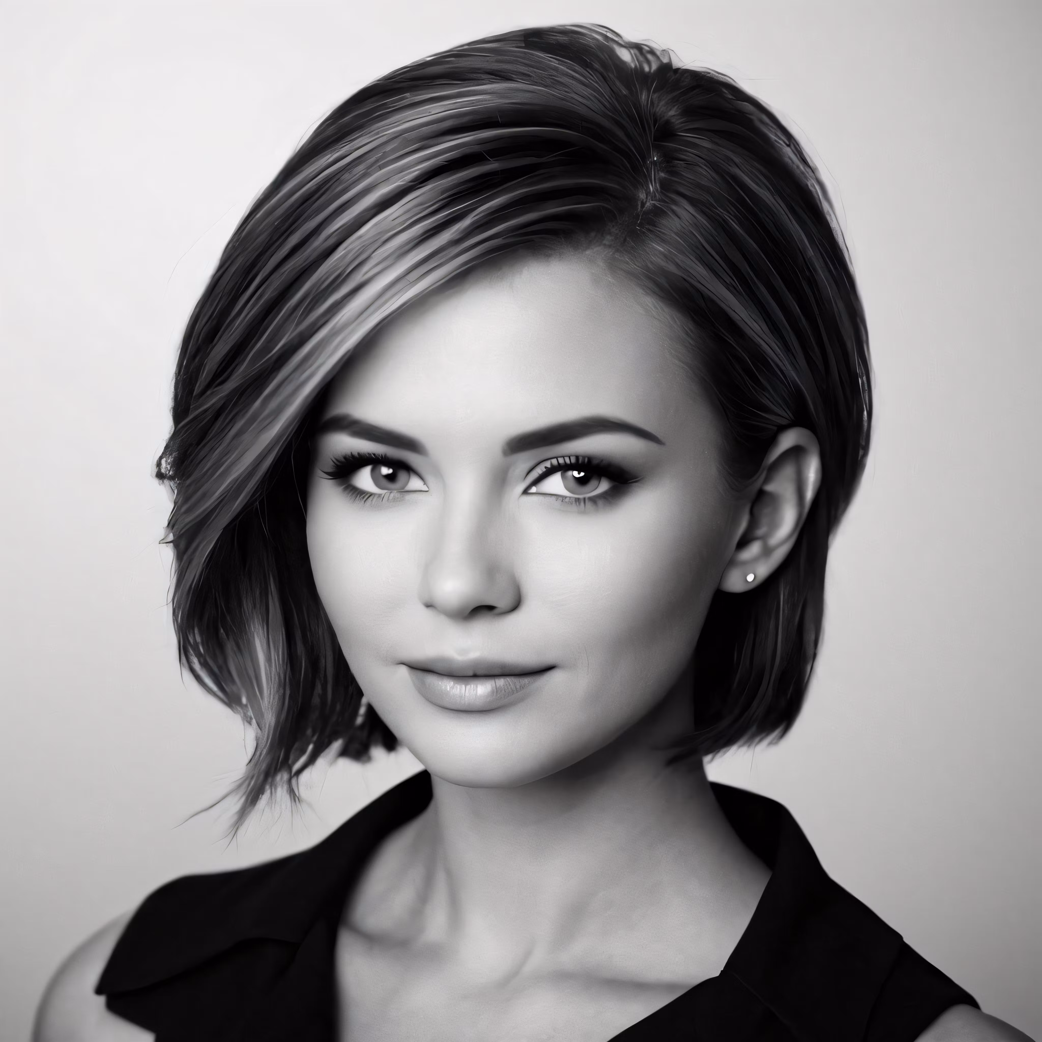 High resolution picture, free to use, a woman with a short haircut wearing a dress