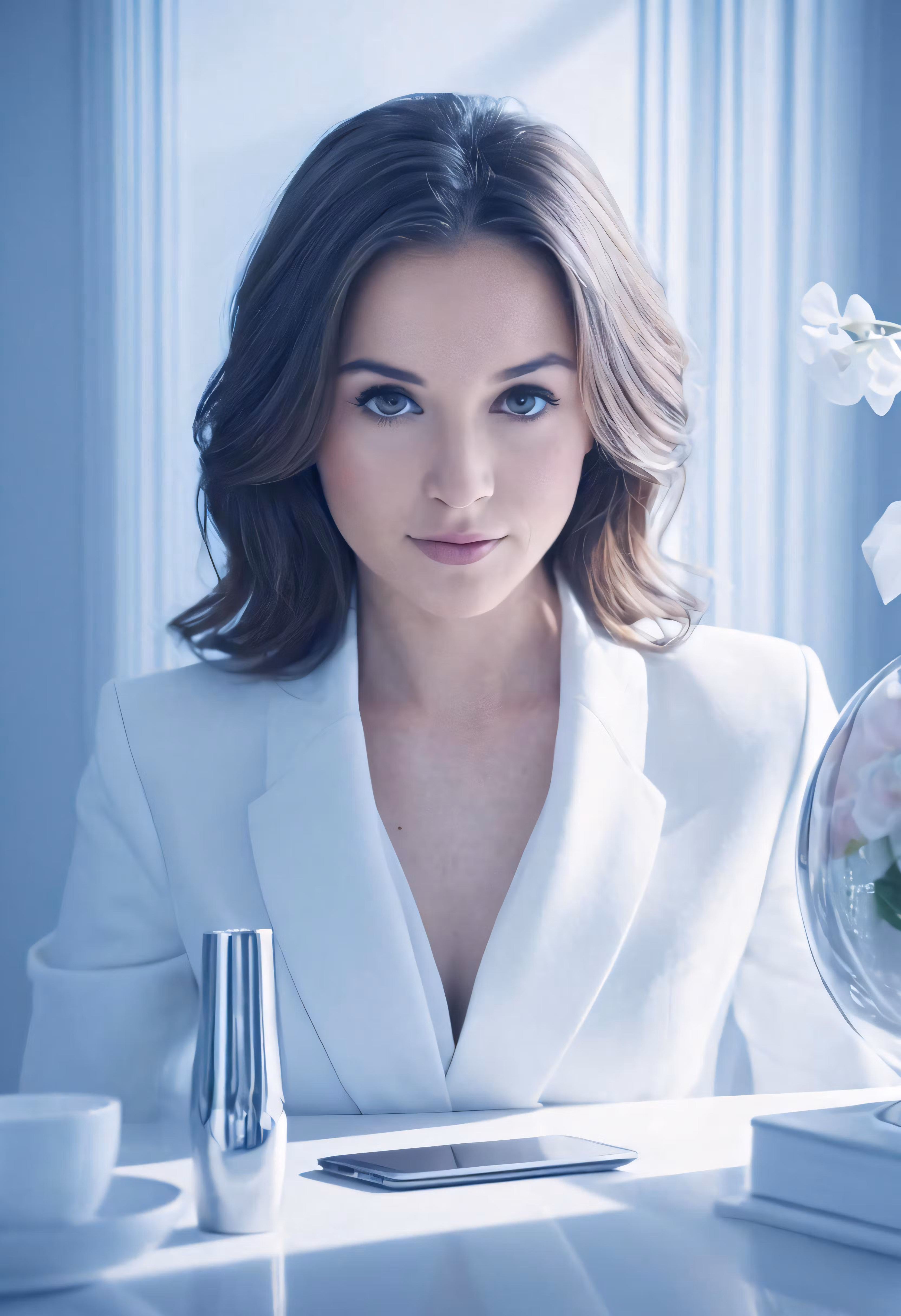 High resolution picture, free to use, a woman with a suit and flower in her hair