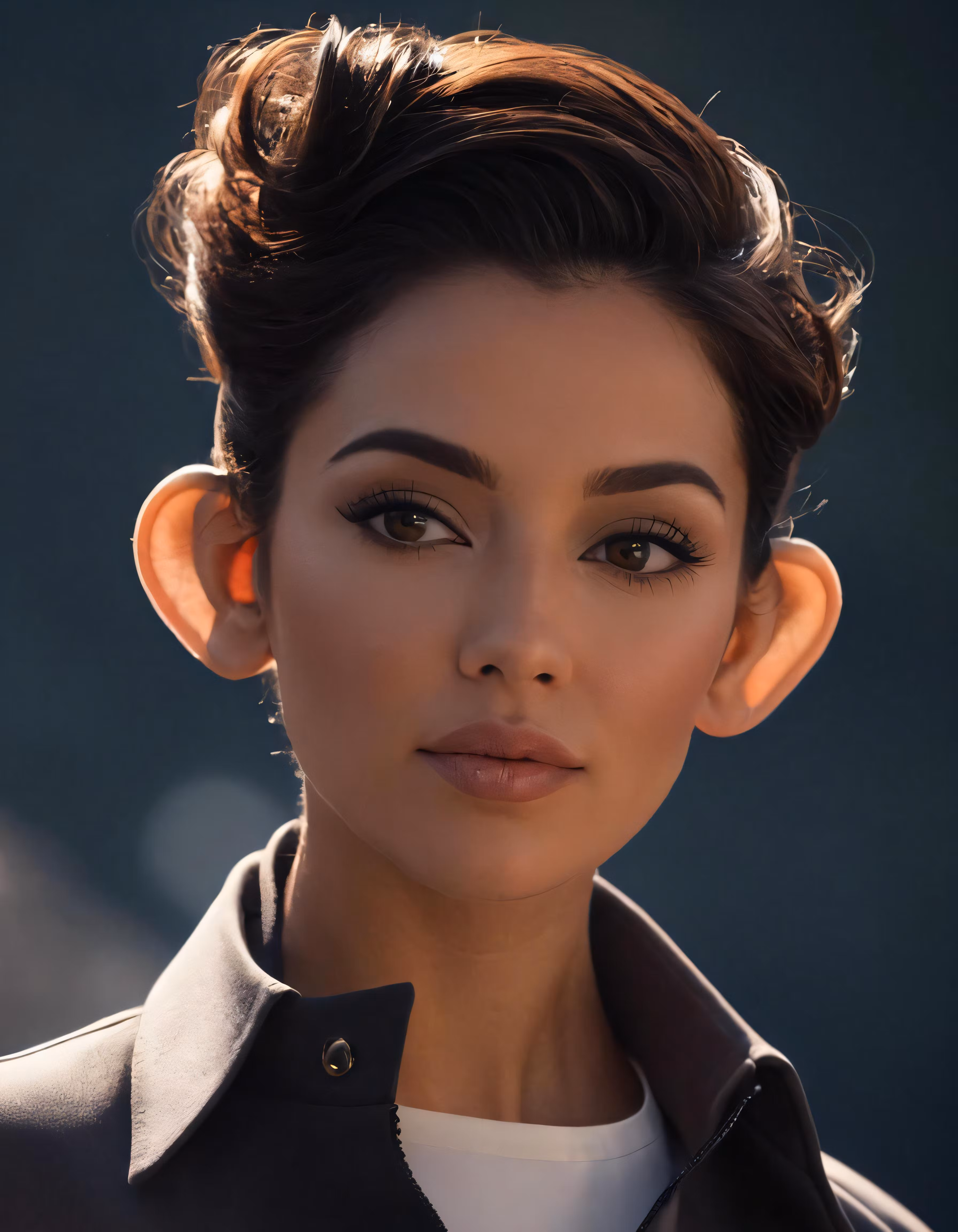 High resolution picture, free to use, a woman with a suit jacket and brown eyeliner