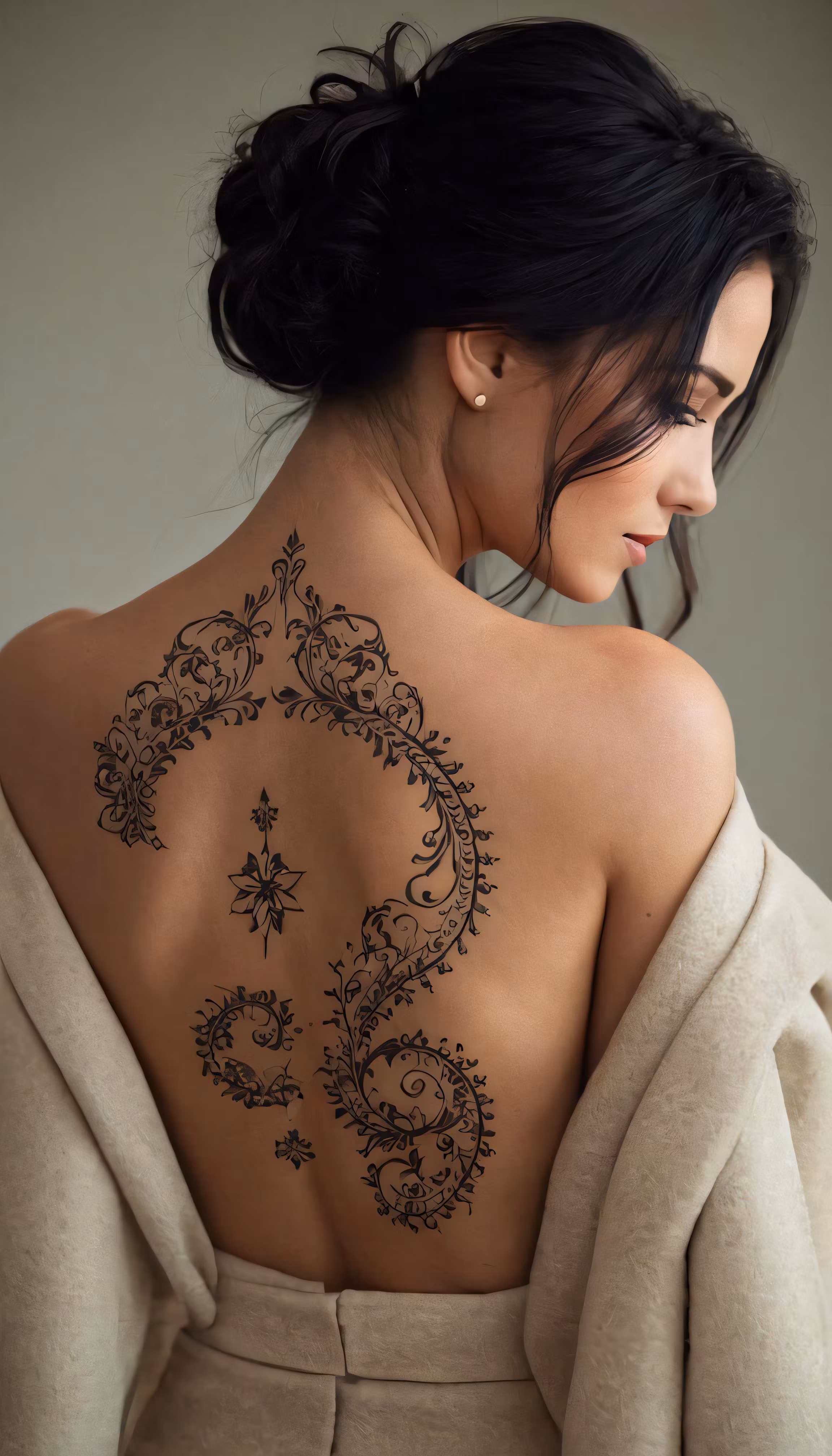 High resolution picture, free to use, a woman with a tattoo on her back and behind