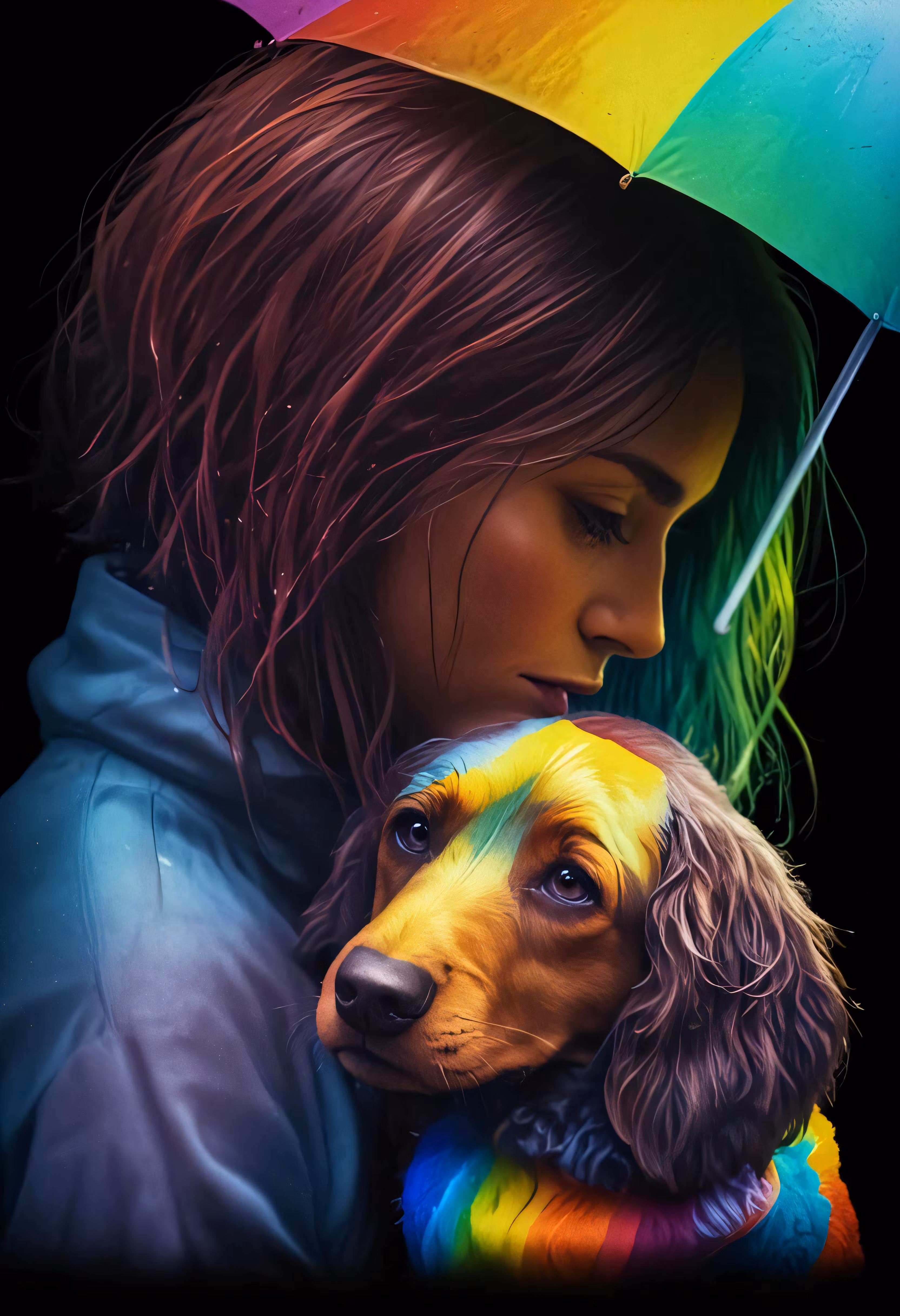 High resolution picture, free to use, a woman with a umbrella holding her dog
