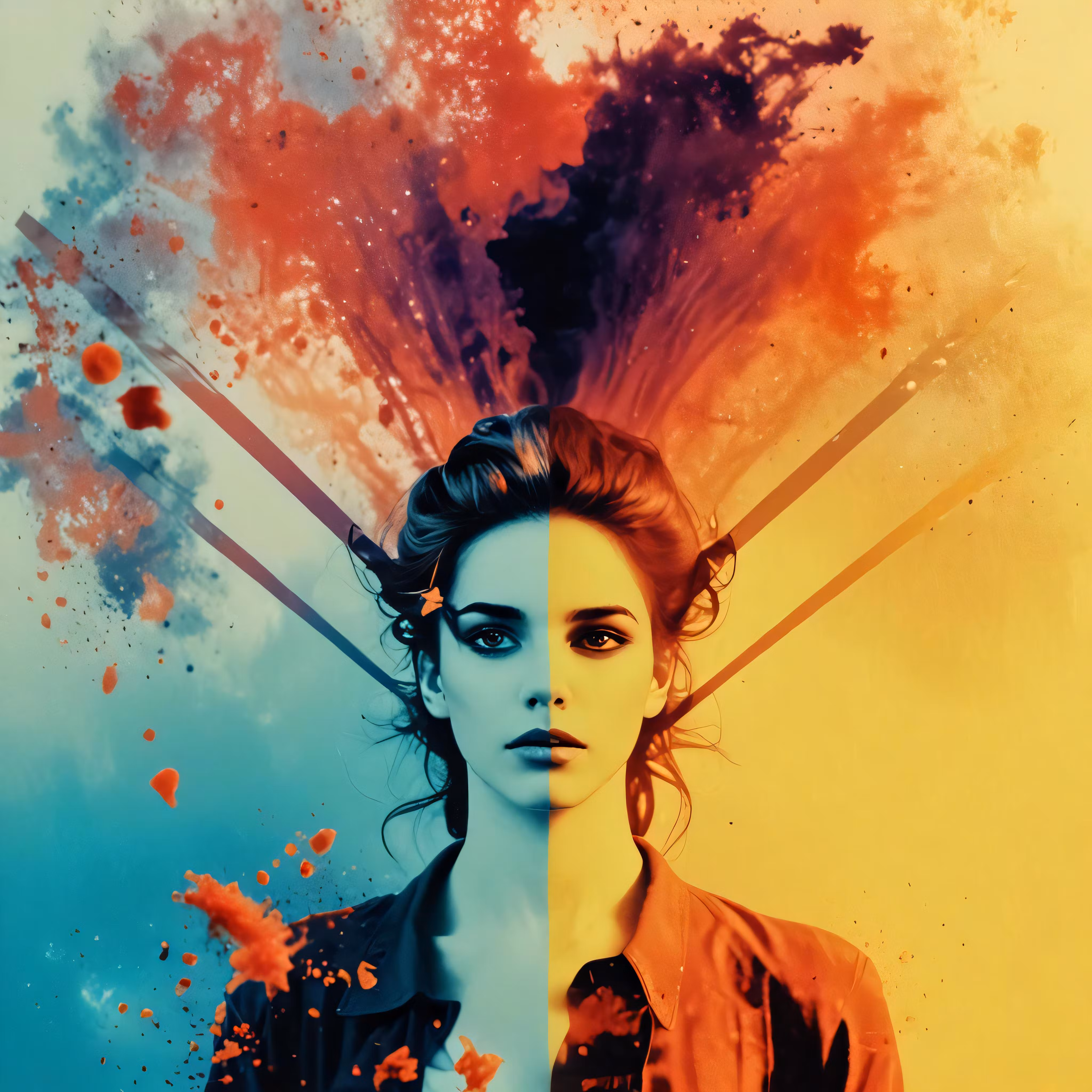 High resolution picture, free to use, a woman with an abstract painting on her face