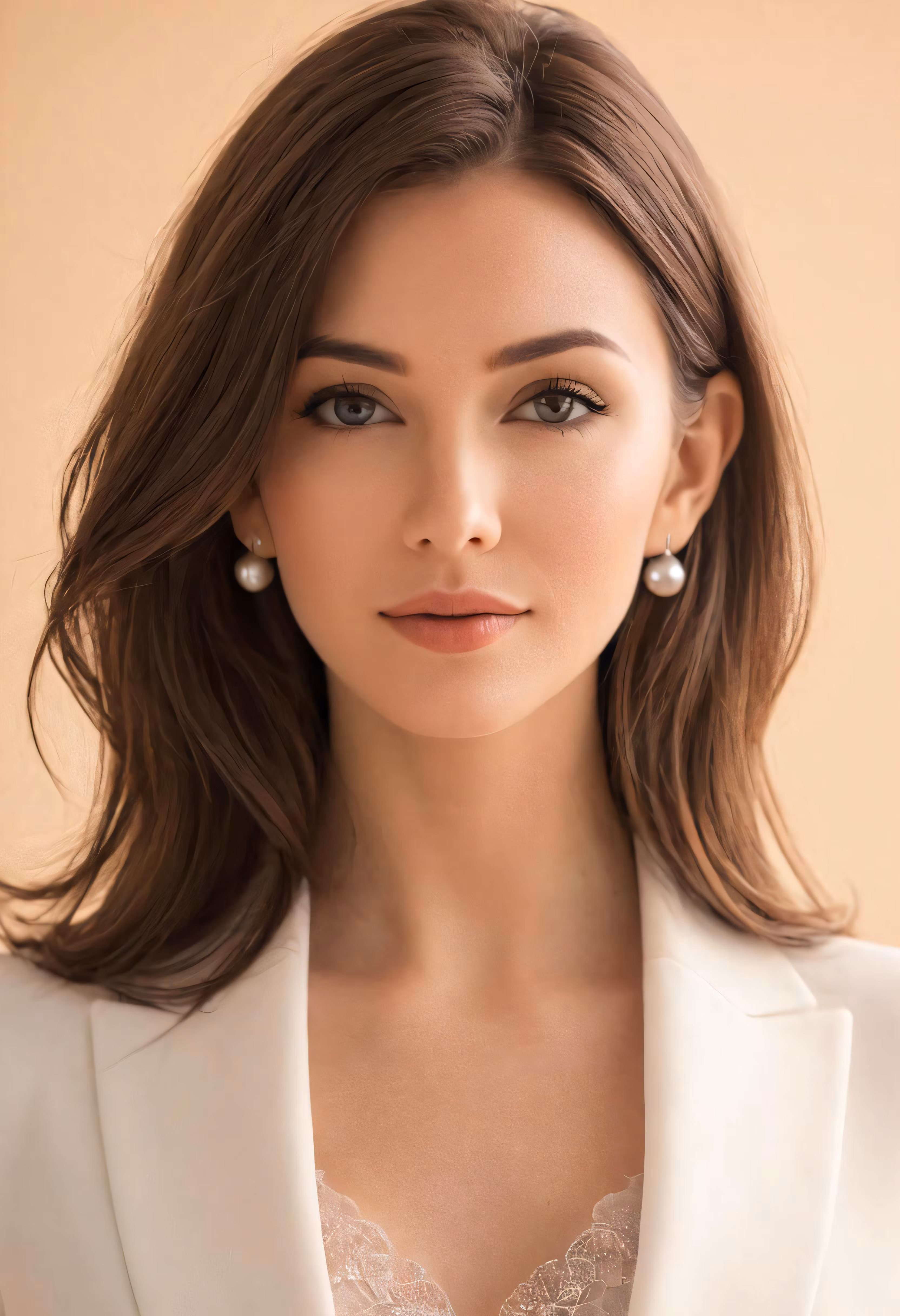 High resolution picture, free to use, a woman with an elegant white coat and earrings