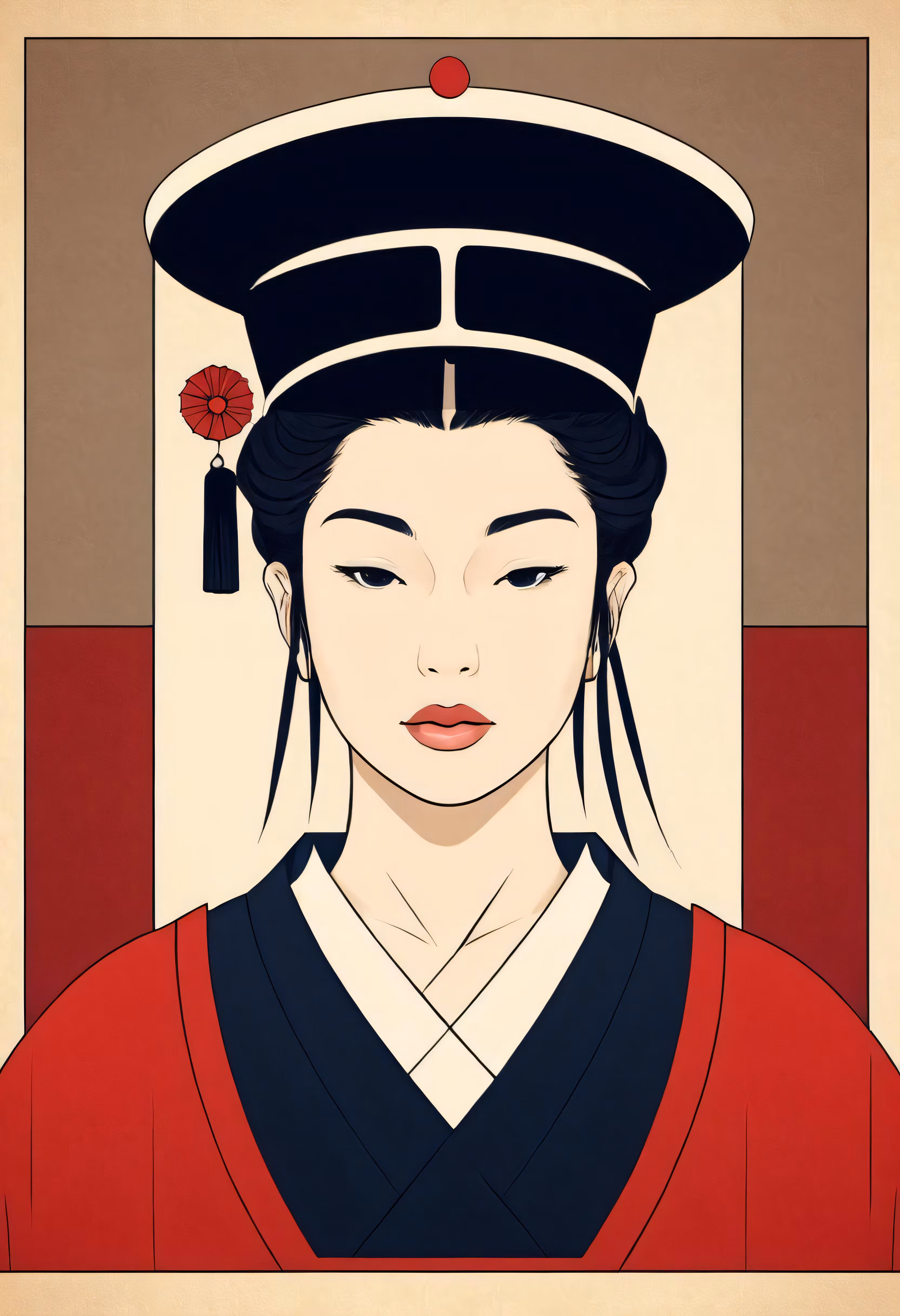 High resolution picture, free to use, a woman with an oriental headpiece and a hat