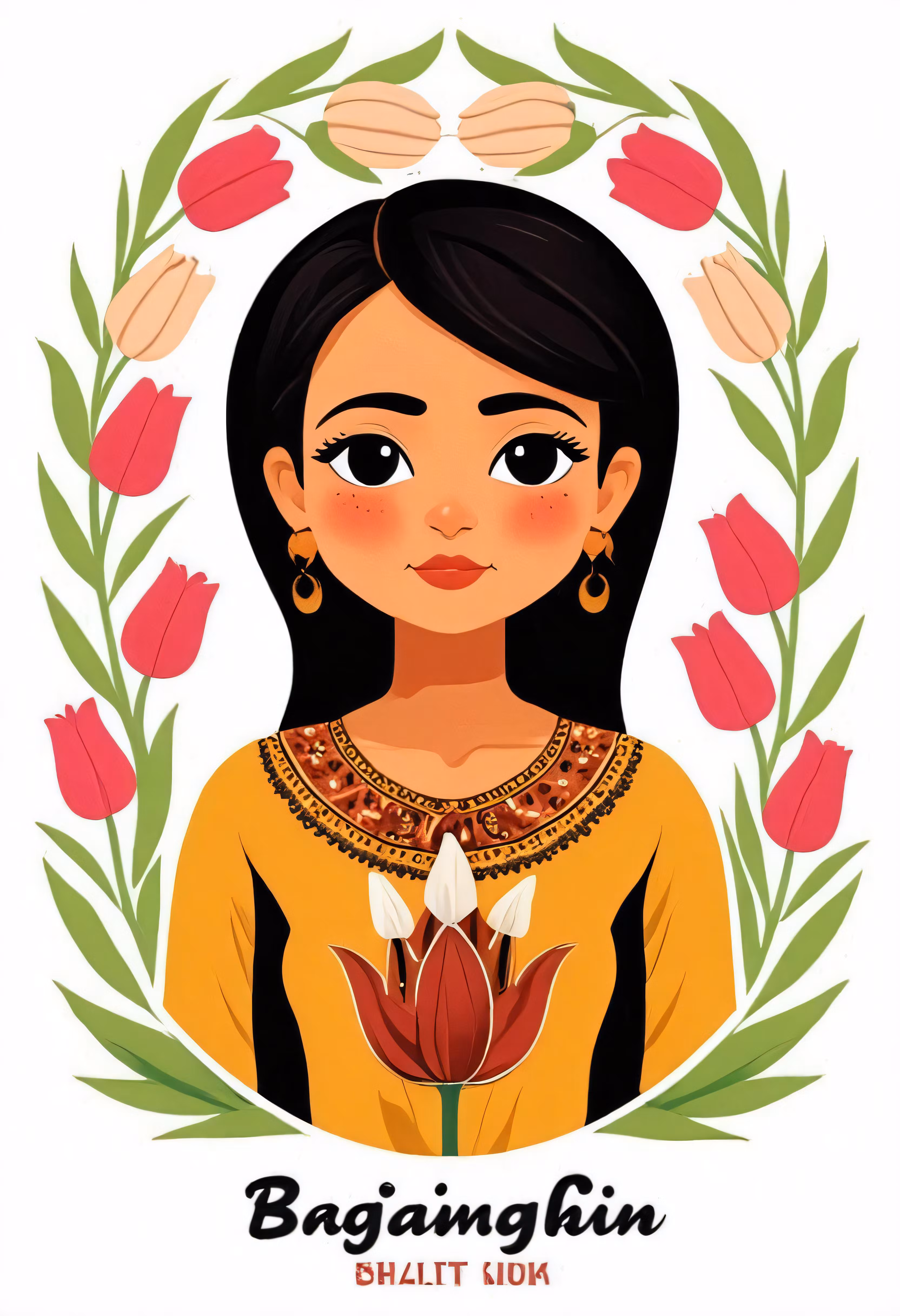 High resolution picture, free to use, a woman with an ornament on her forehead, and the words bagi ngai on it