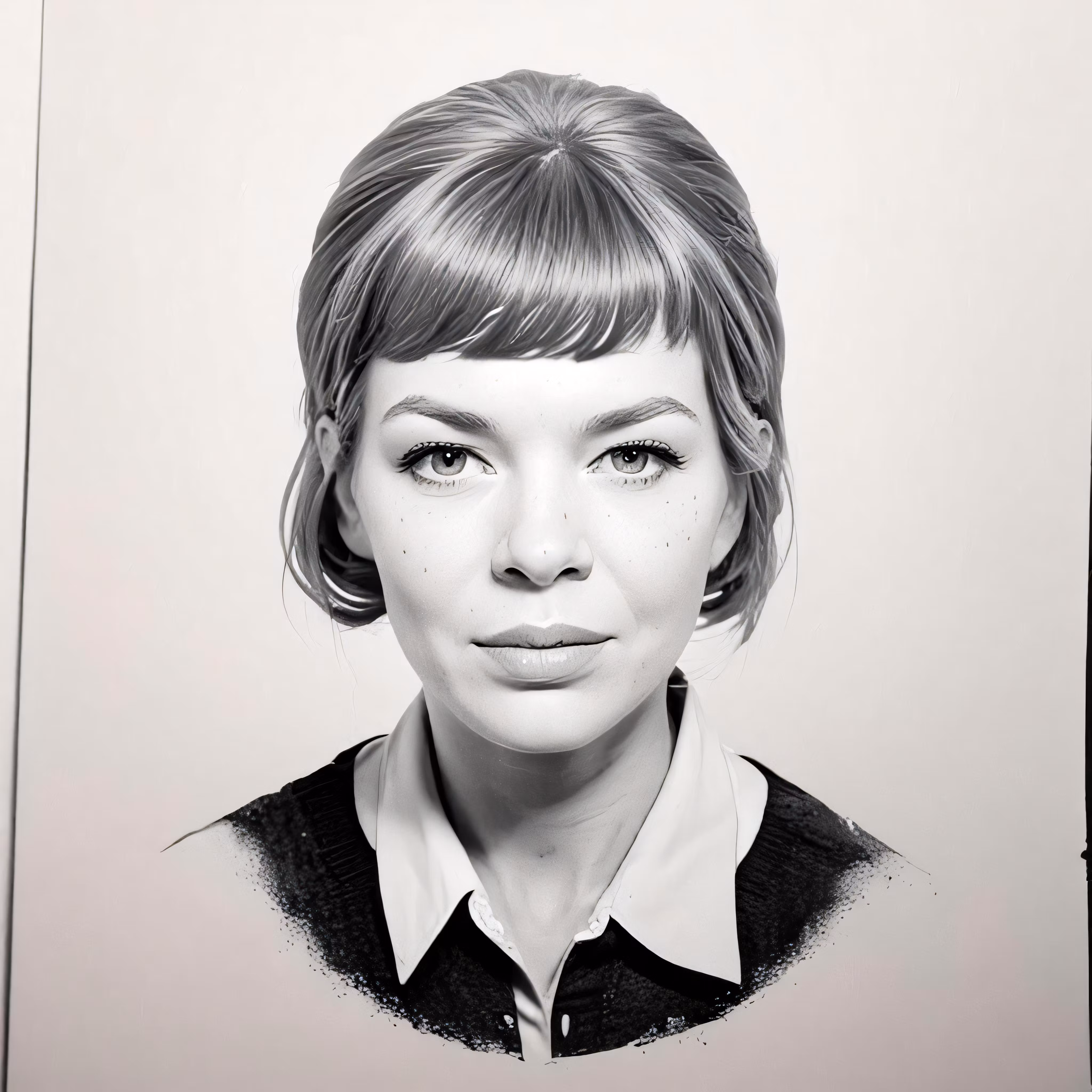 High resolution picture, free to use, a woman with bangs and bangs in a black and white portrait
