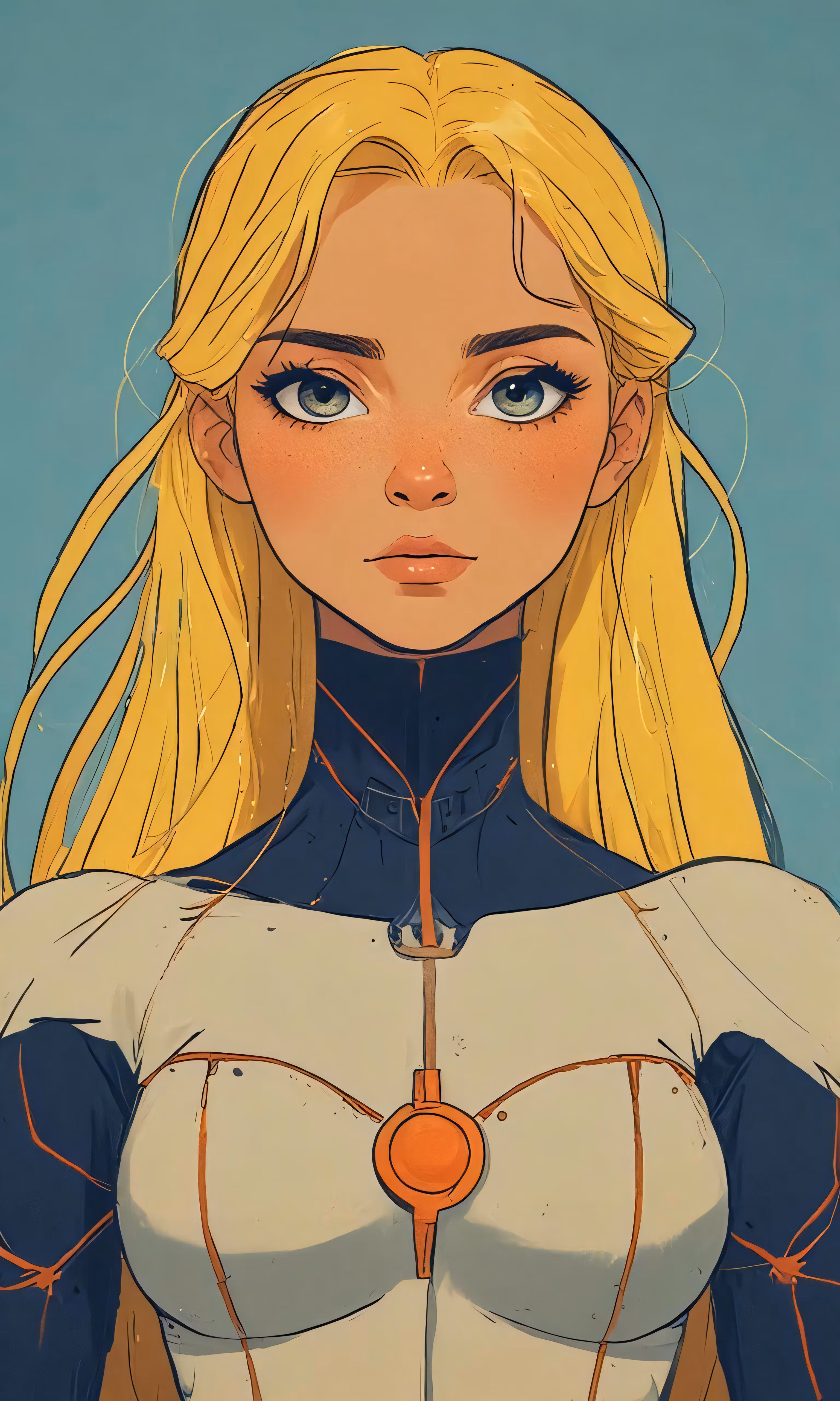 High resolution picture, free to use, a woman with blonde hair, wearing blue dress and holding a gun