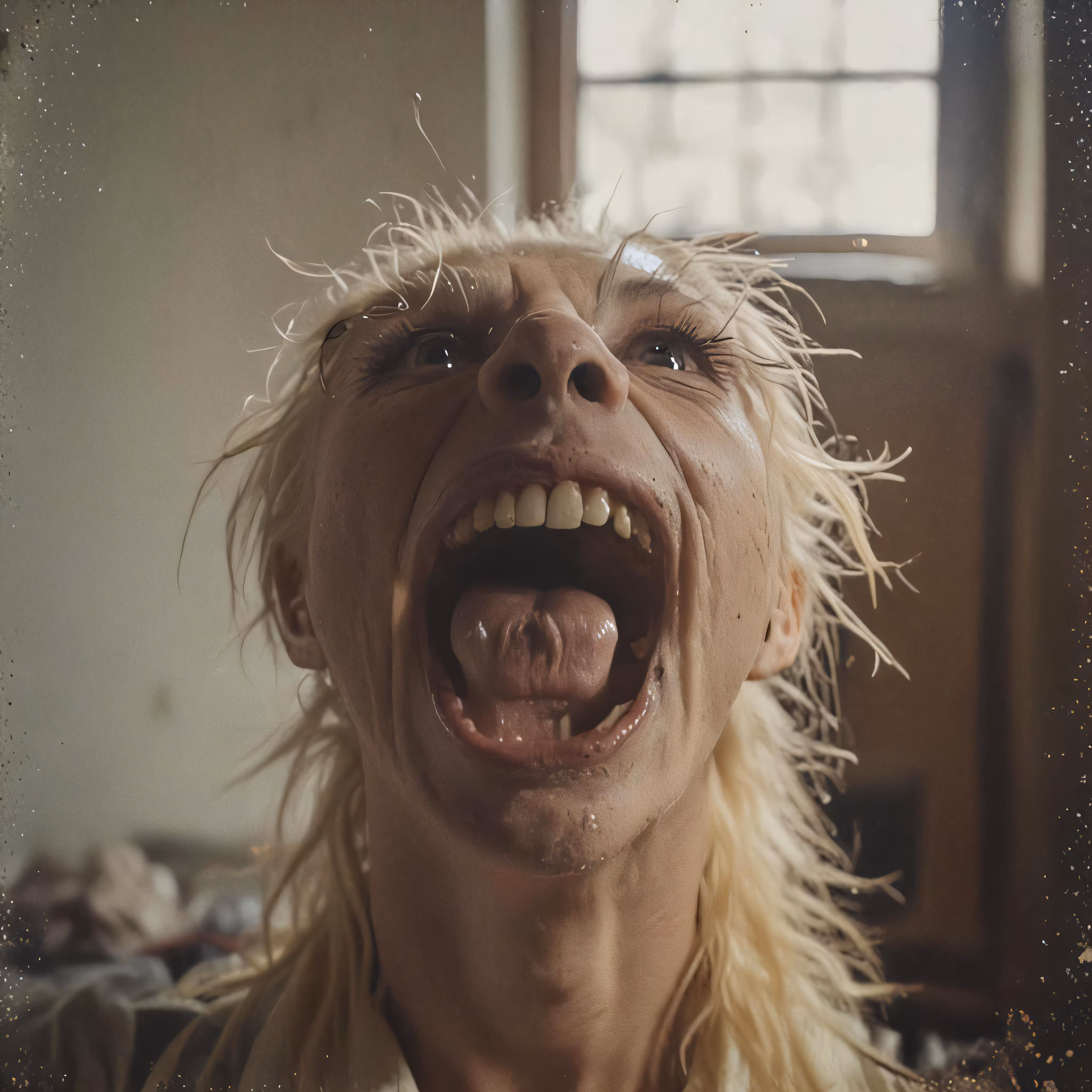 High resolution picture, free to use, a woman with blonde hair has her mouth open