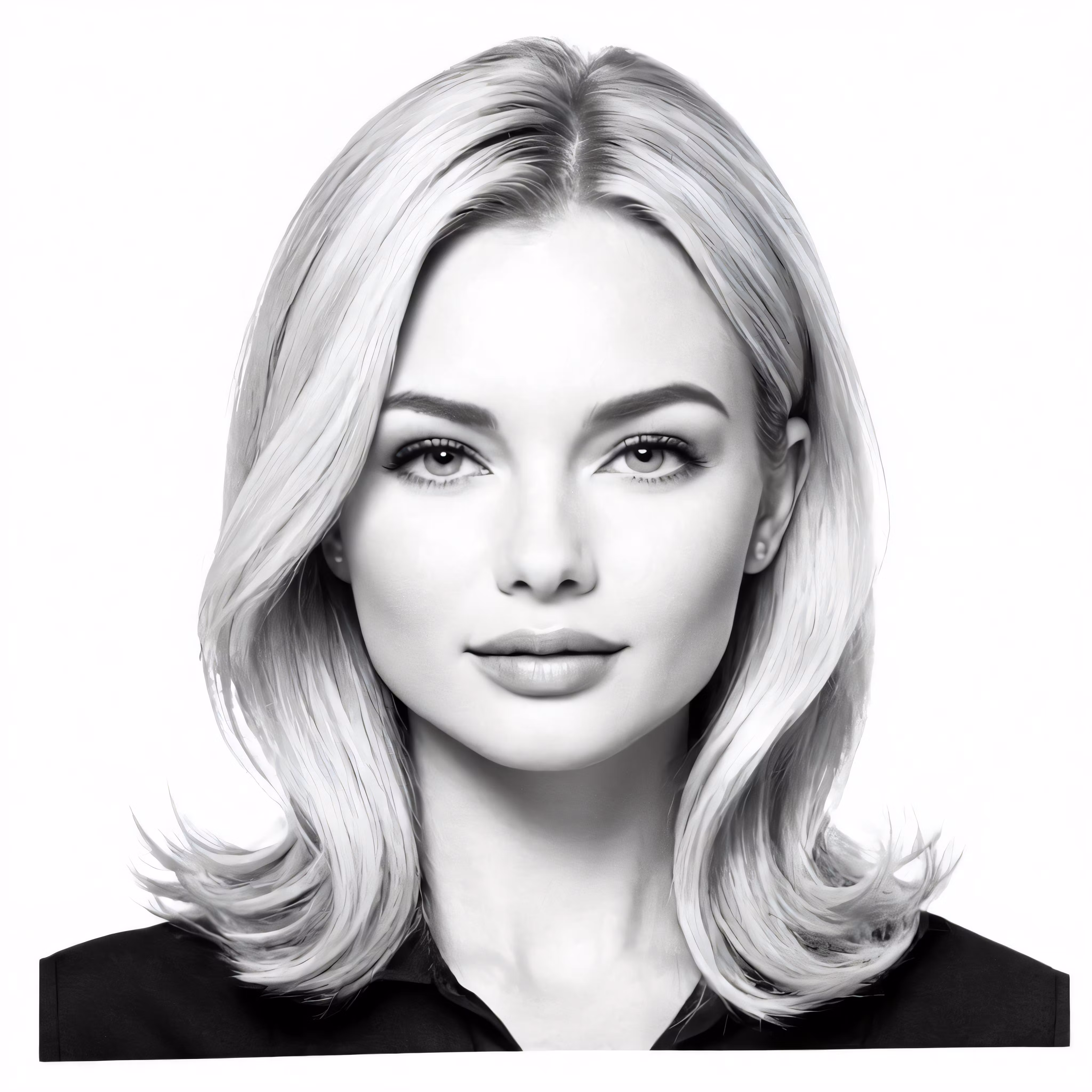 High resolution picture, free to use, a woman with blonde hair is shown in a black and white photograph
