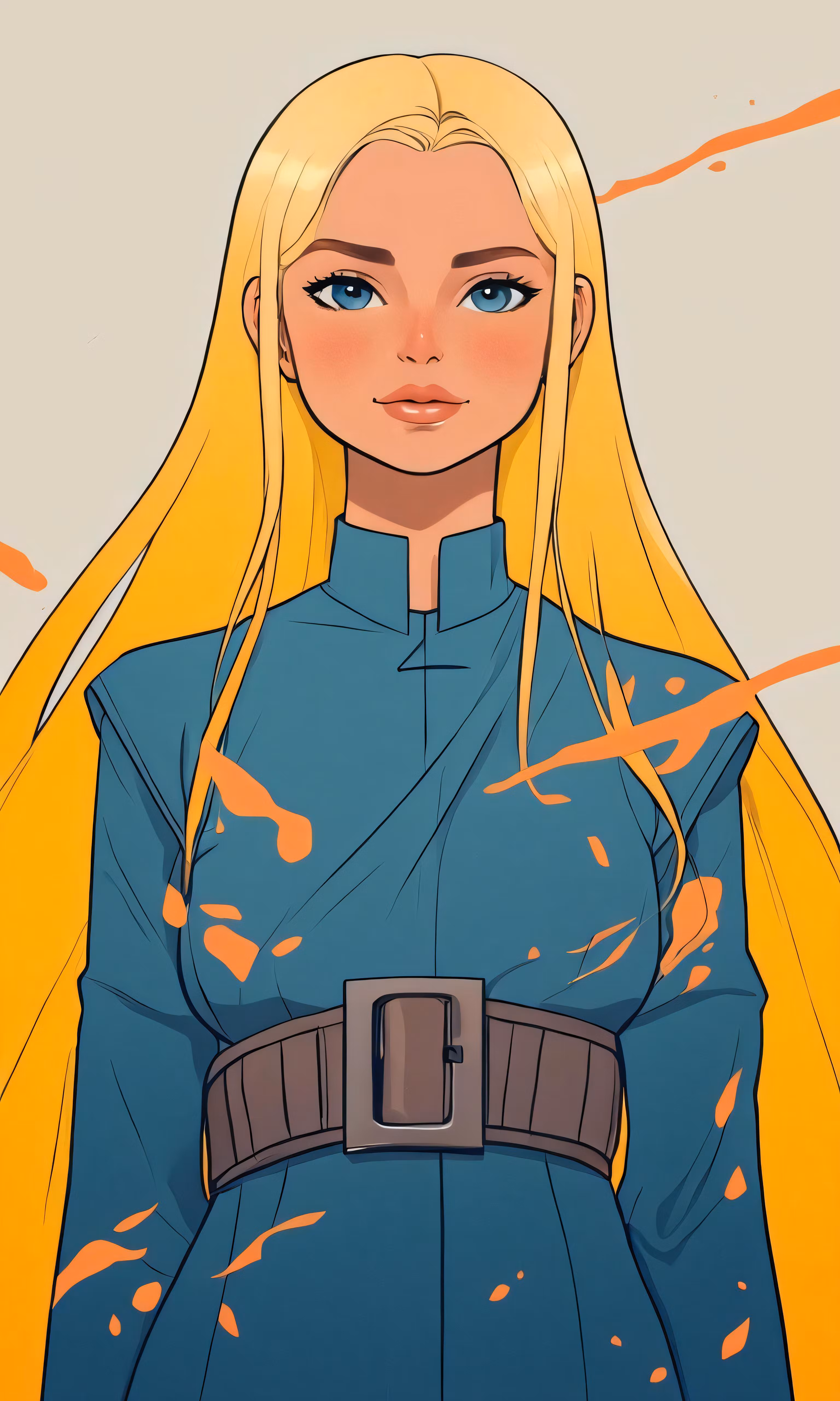 High resolution picture, free to use, a woman with blonde hair is wearing a blue dress
