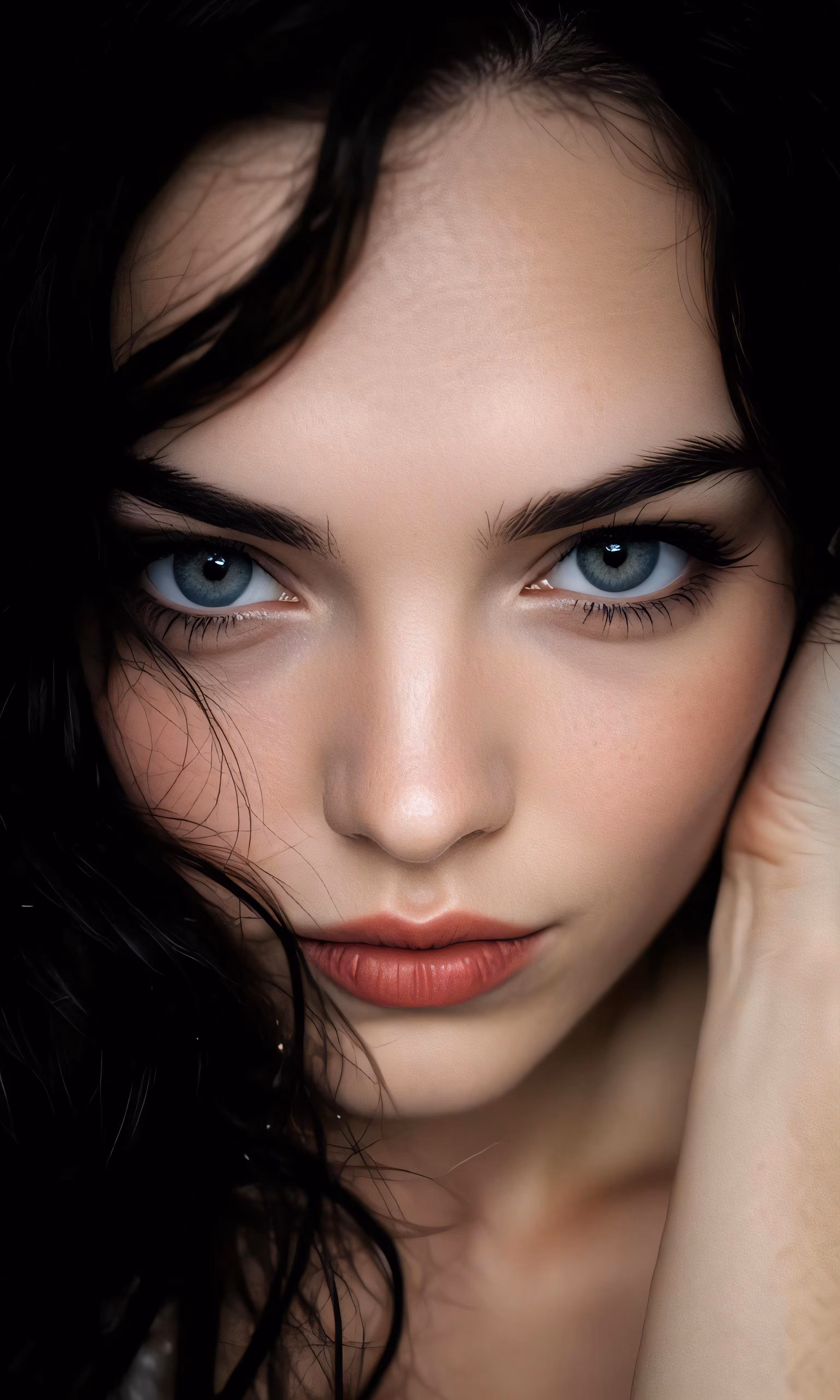 High resolution picture, free to use, a woman with blue eyes poses for the camera
