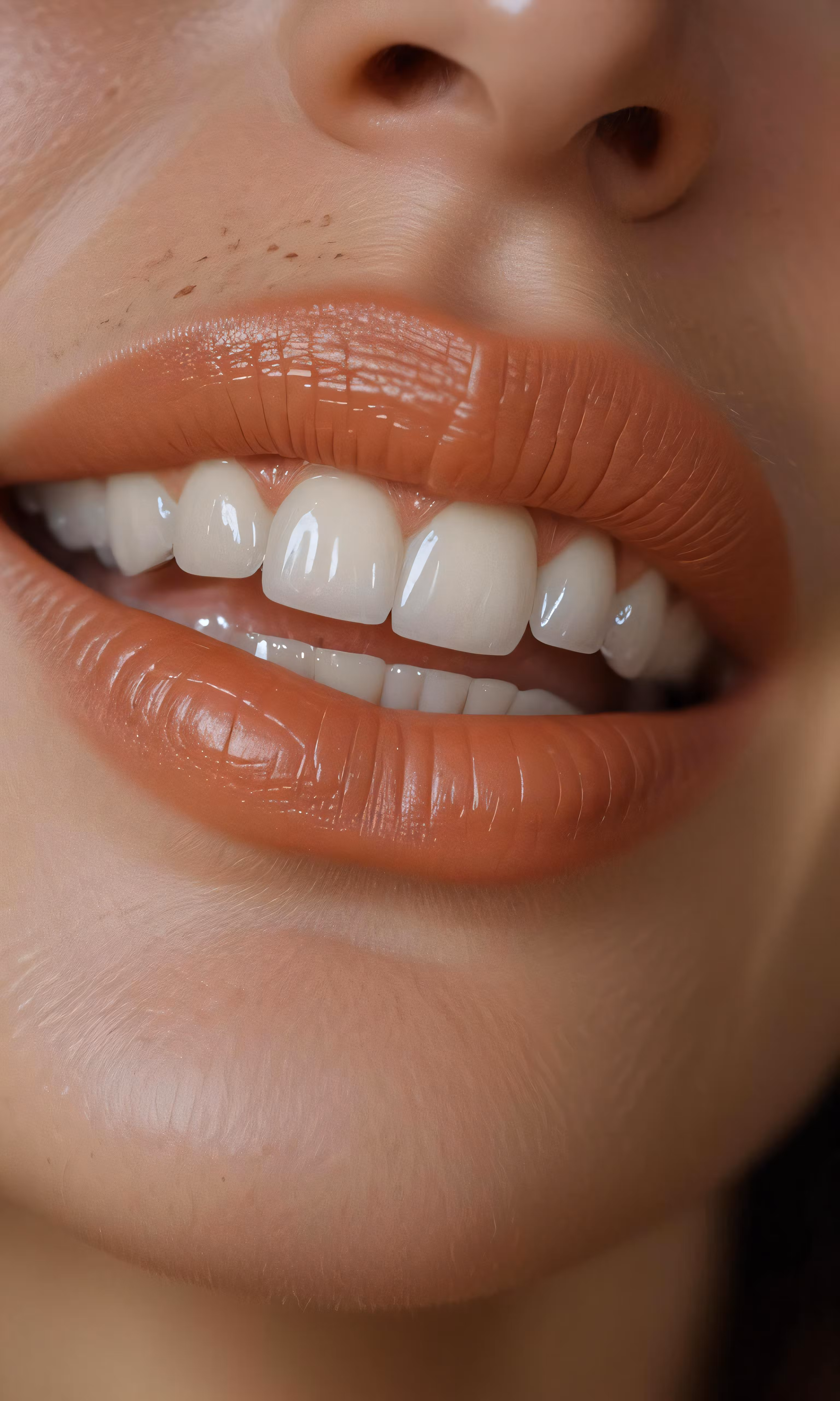 High resolution picture, free to use, a woman with bright brown lips and bright teeth