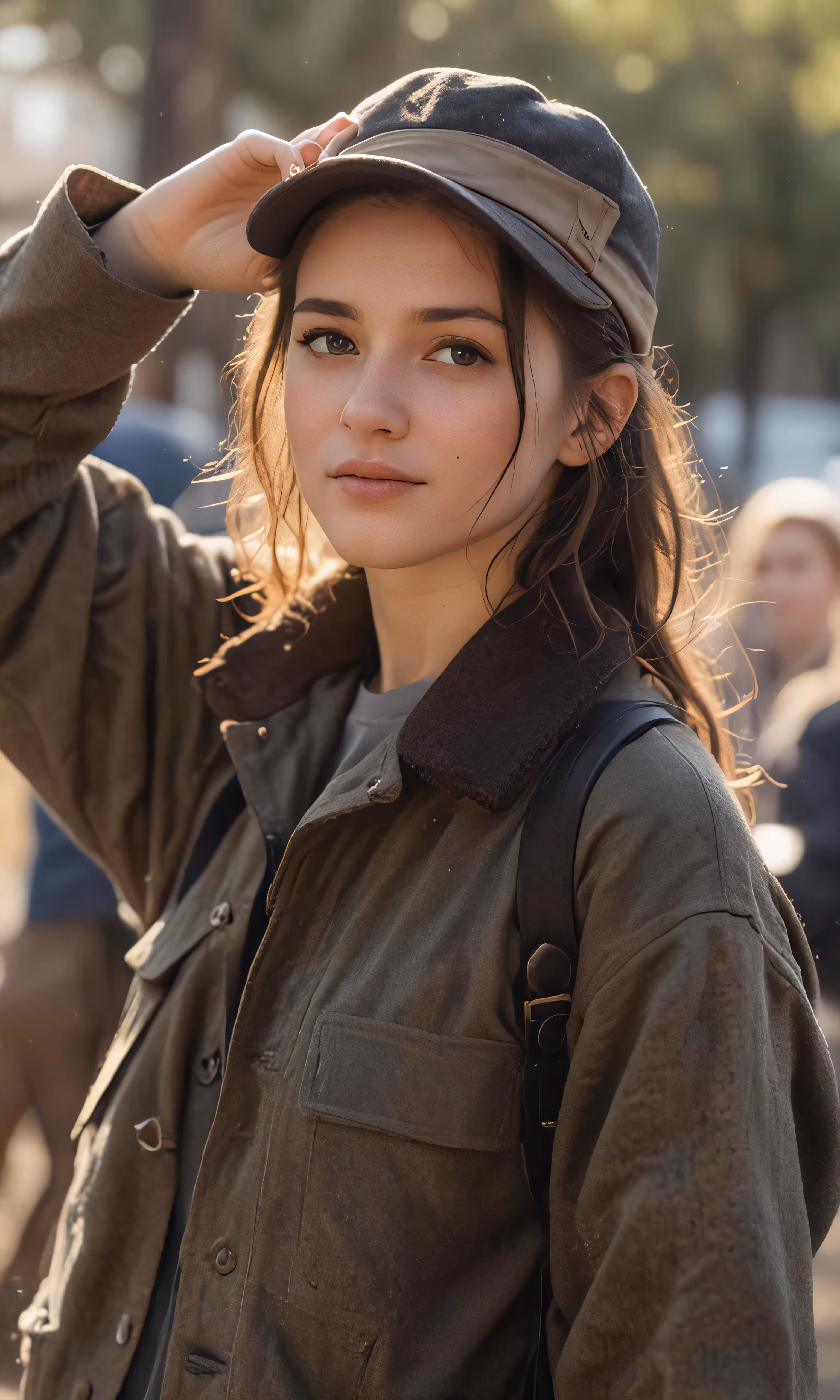 High resolution picture, free to use, a woman with brown eyes is wearing a jacket and hat