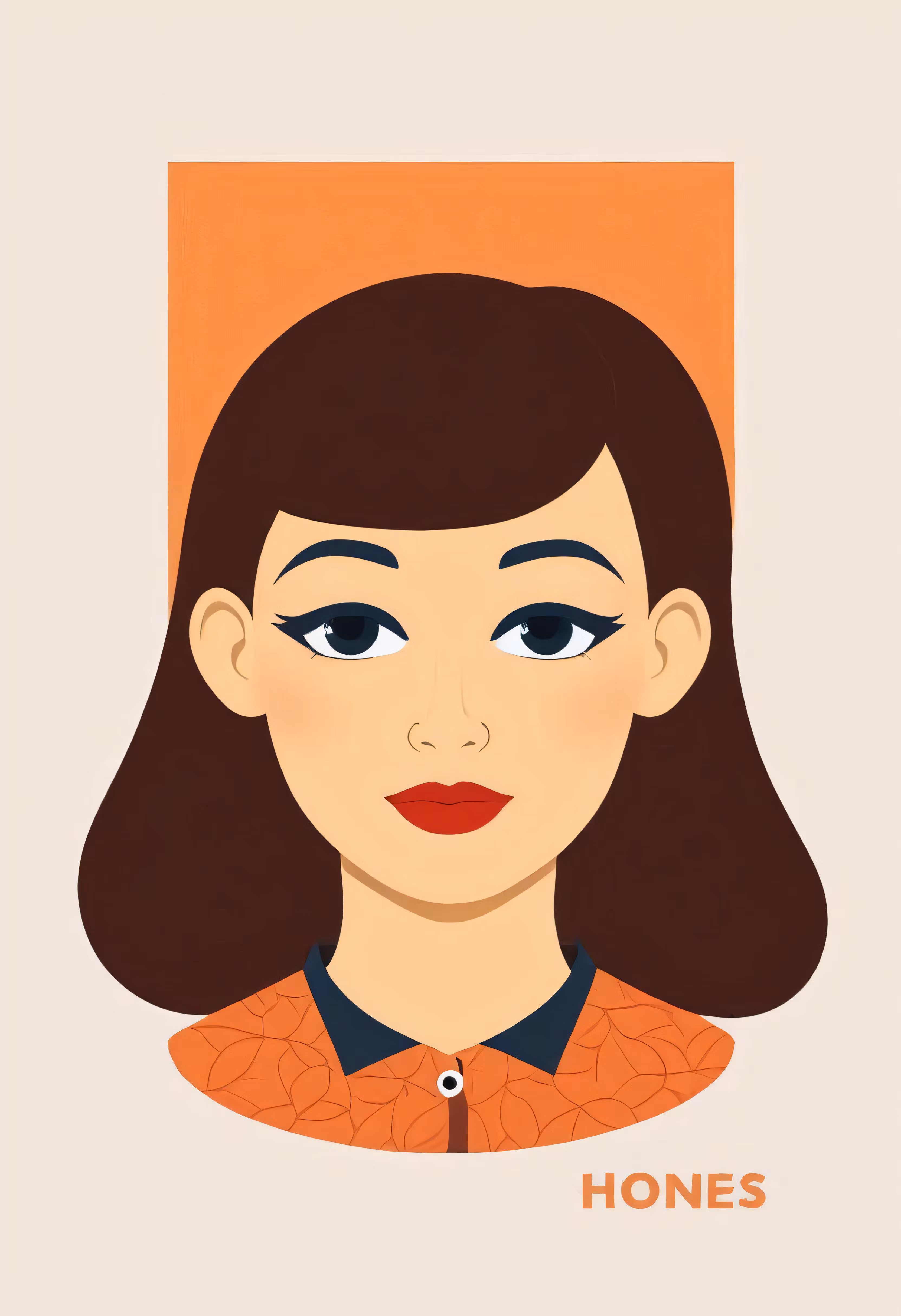High resolution picture, free to use, a woman with brown hair is wearing an orange shirt