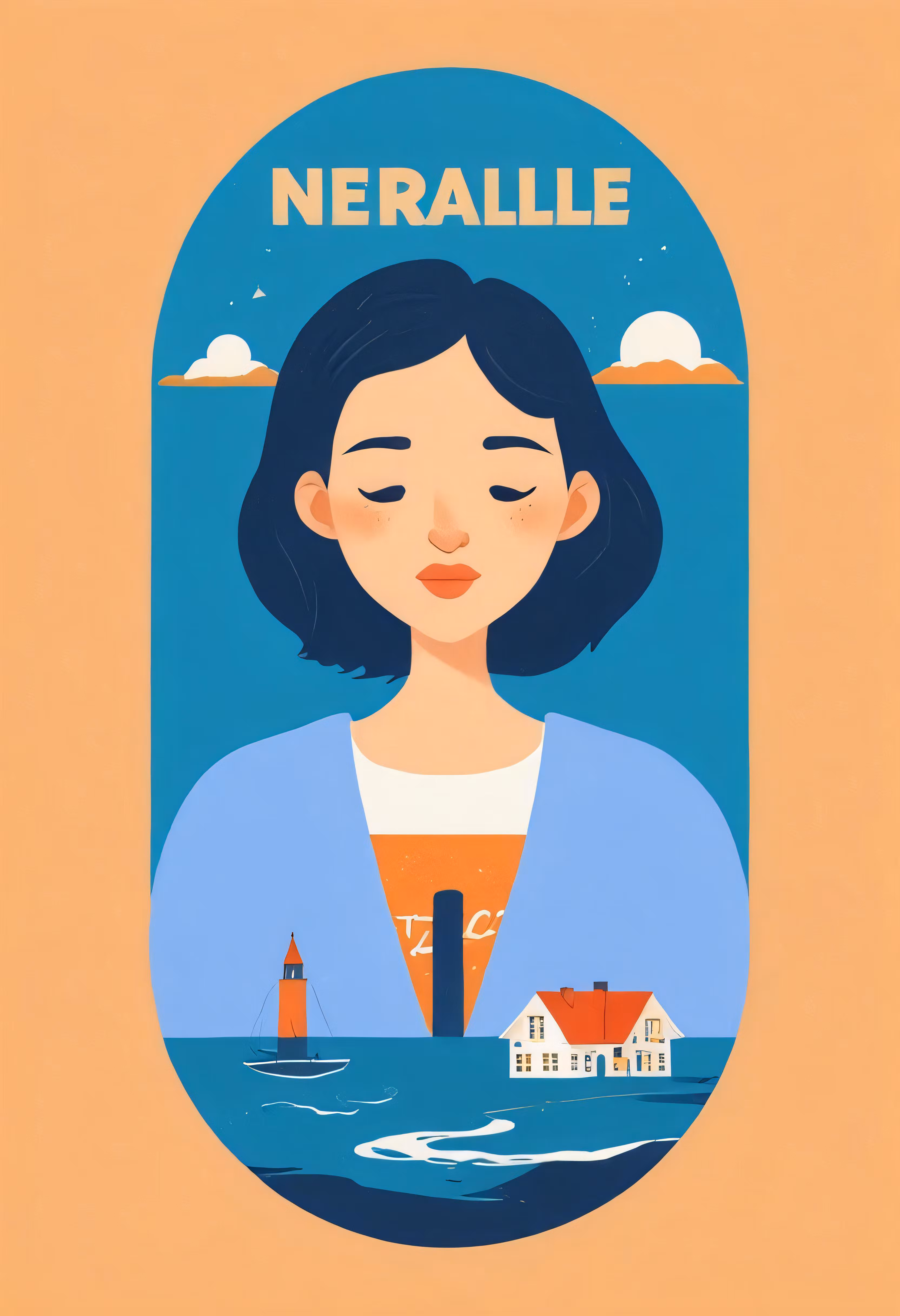 High resolution picture, free to use, a woman with dark hair in a blue dress is holding a lighthouse in her hand