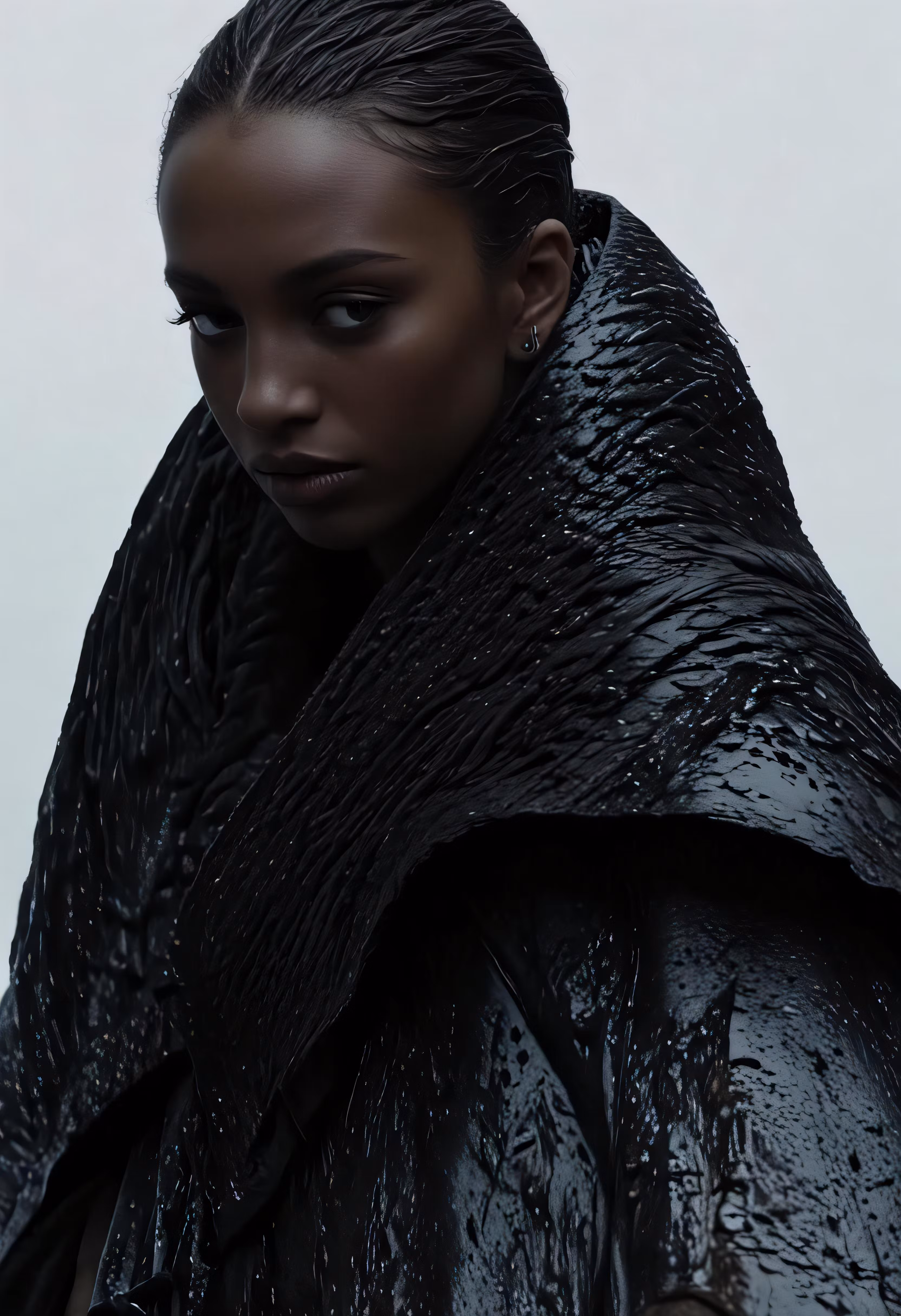 High resolution picture, free to use, a woman with dreads standing in the rain