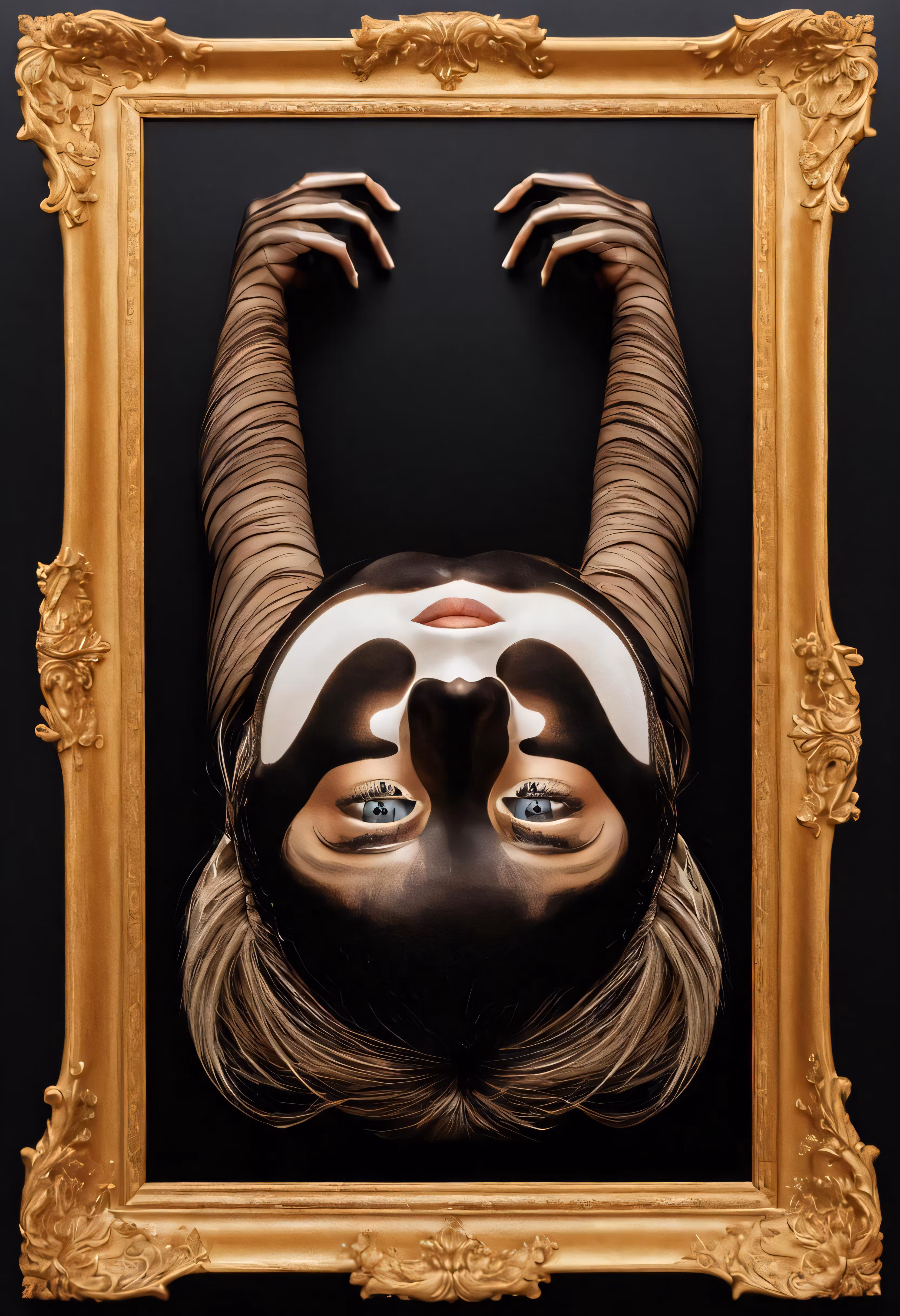 High resolution picture, free to use, a woman with face paint in front of a frame