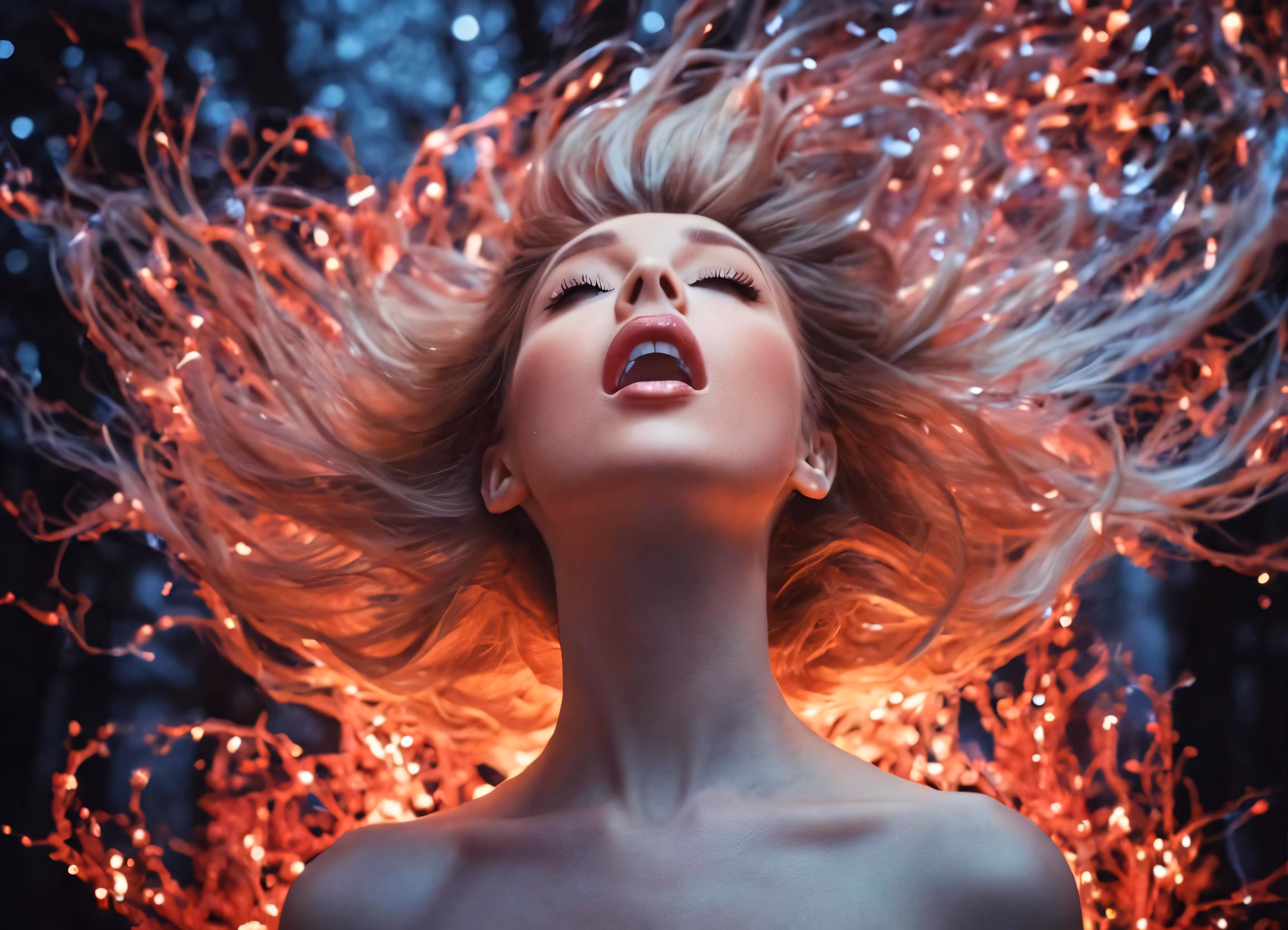 High resolution picture, free to use, a woman with flowing hair blowing in the wind