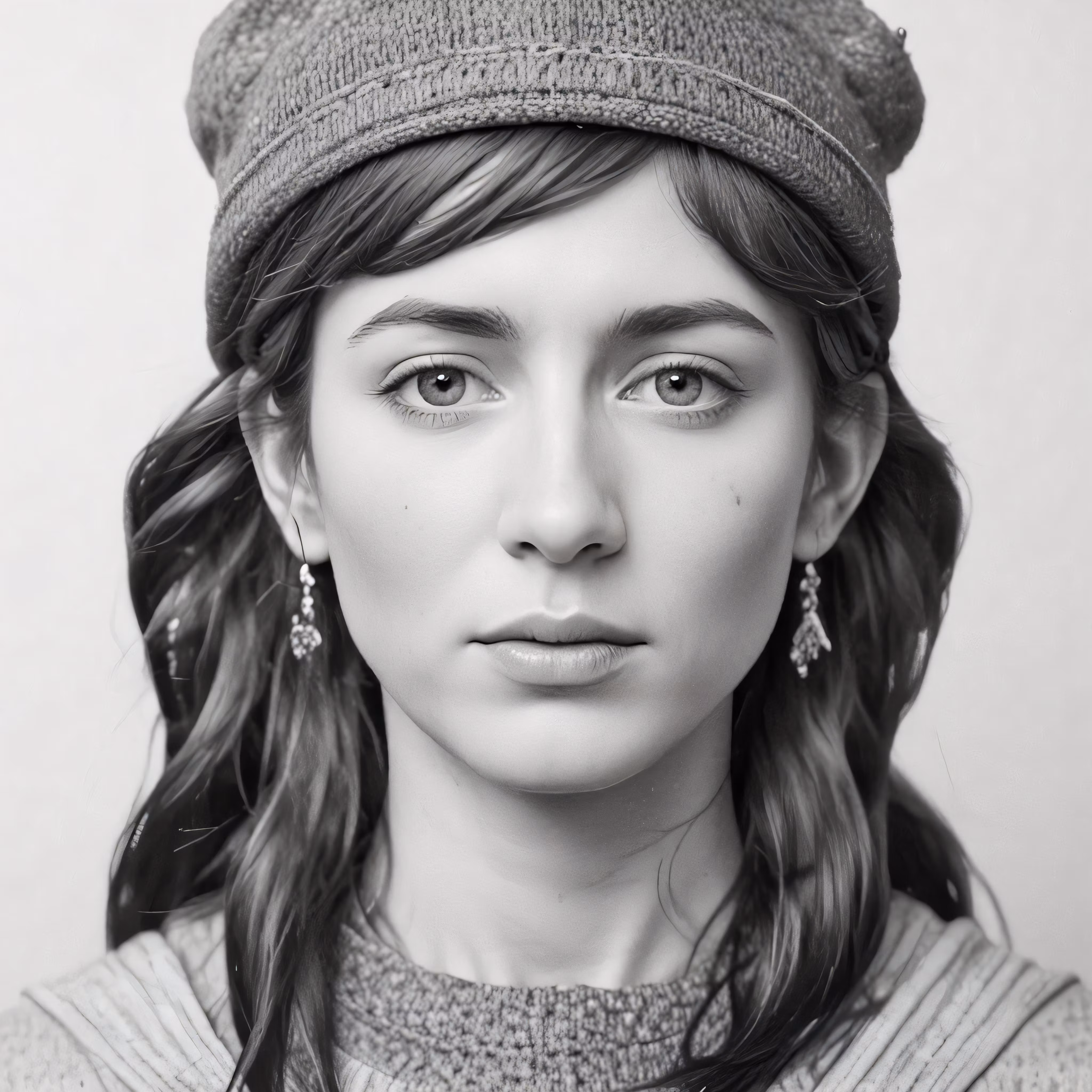 High resolution picture, free to use, a woman with hair wearing a hat and earrings