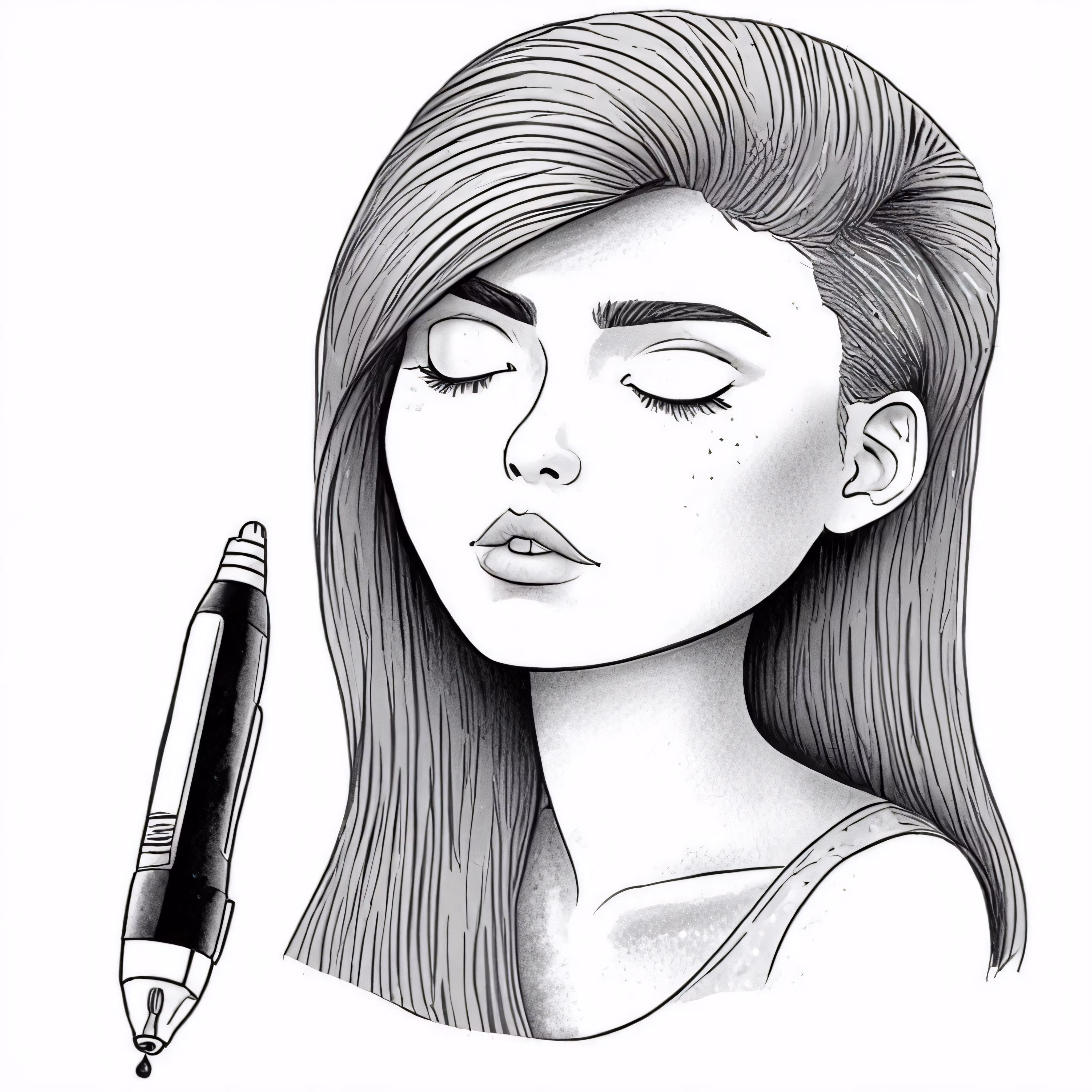 High resolution picture, free to use, a woman with her eyes closed and a pen resting on her cheek